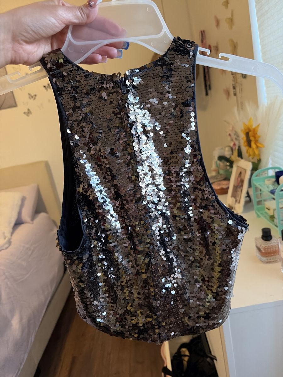 Brand new gold sequin tank top with a zipper on the back in a size small.
