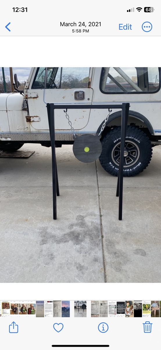 Small target and frame 12 AR 500 3/8s plate. 37 inches tall 34 inches wide. Tall target and frame 12 AR 500 3/8s plate.48 inches tall 34 inches wide. The targets sets up in seconds. No hammering. Sturdy no falling over. Can make any size of frame that you want.