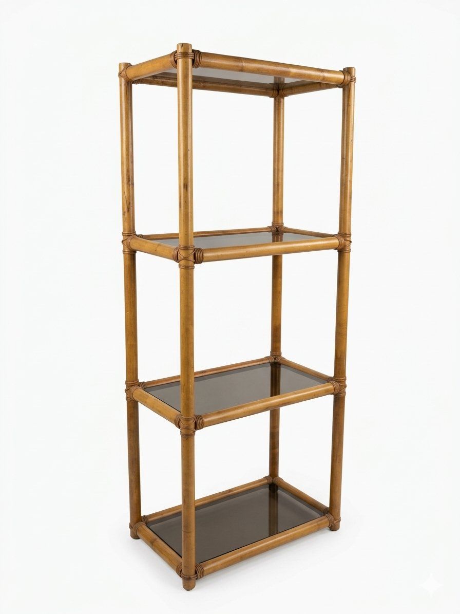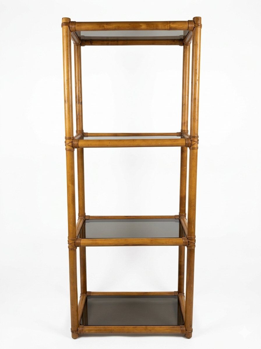 Venmobamboo + rattan look | Mid Century | MCM | shelves | bookshelves | smoked glass shelves