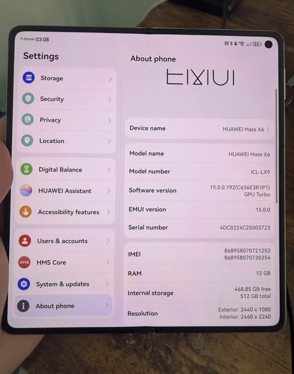 Huawei Mate x6 12+512 EMUI15 Global vision