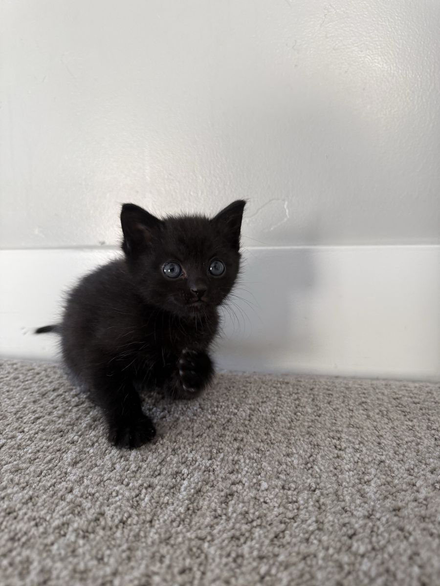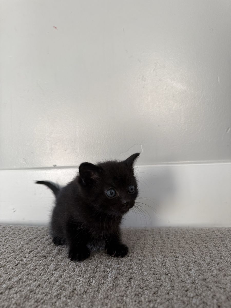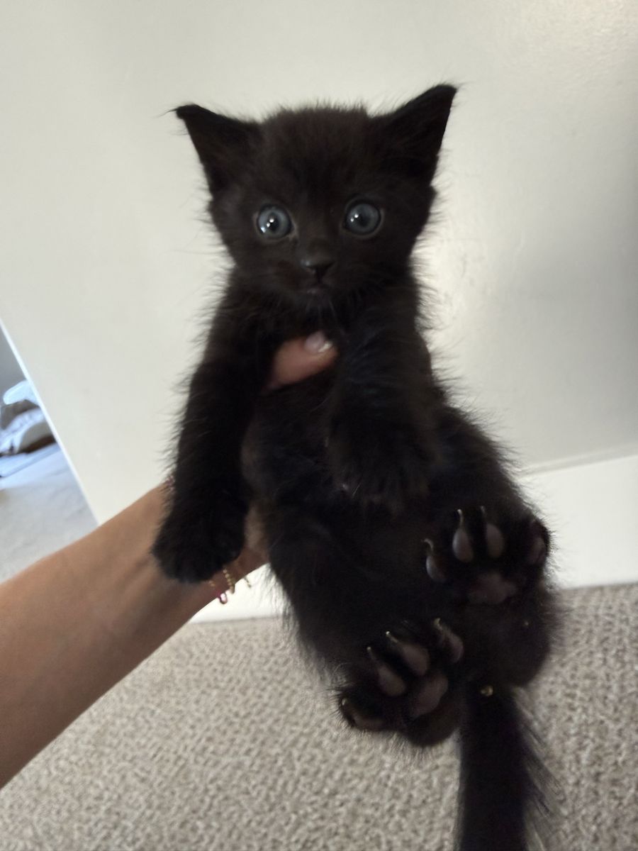 Venmo7 week old male. Fluffy black fur. All black. Very affectionate. He is sweet with our other pets. Great with the litter box and kids