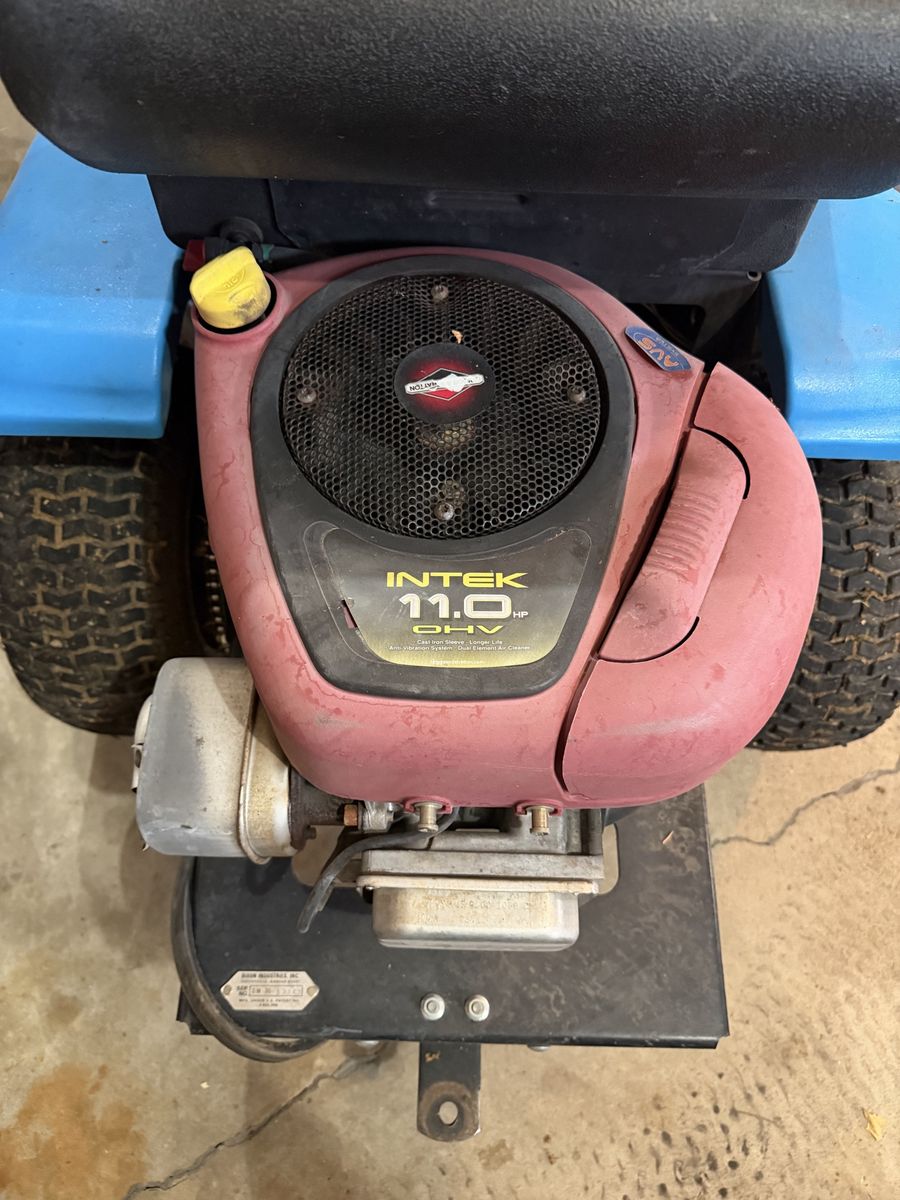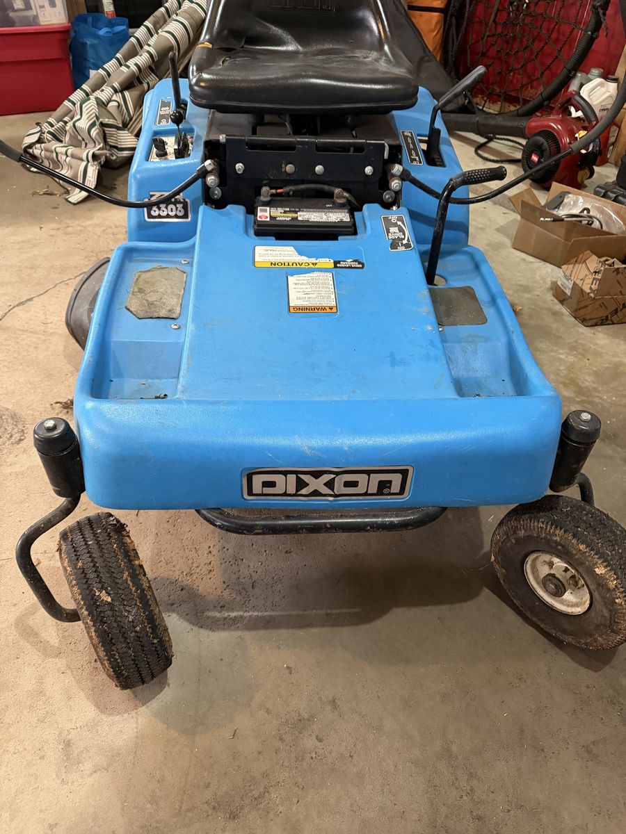 VenmoDixon ZTR 3303 riding lawnmower. 11Hp motor starts right up with new battery. Includes Dixon accessories of a snow plow, sweeper basket and dethatcher.
