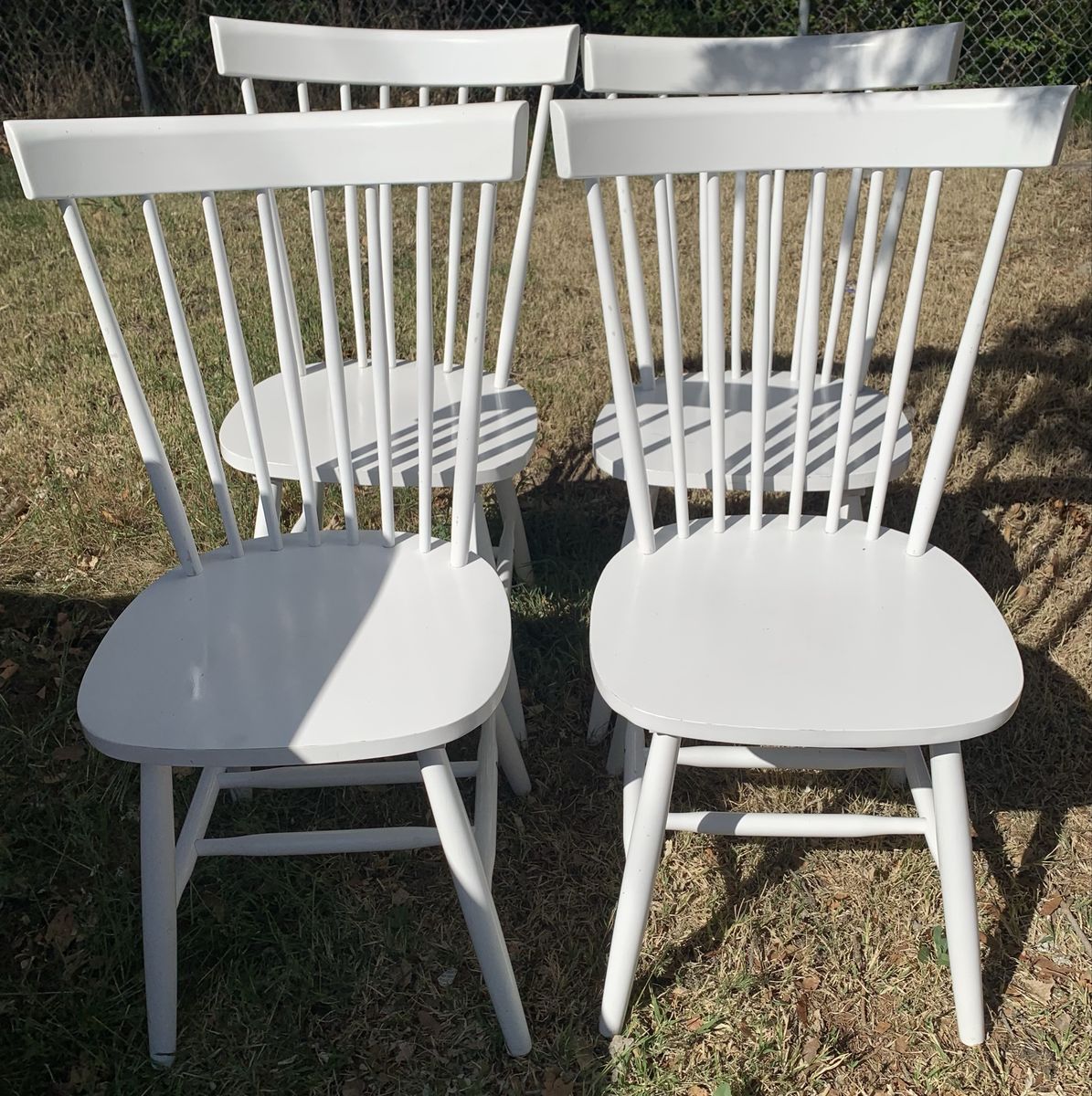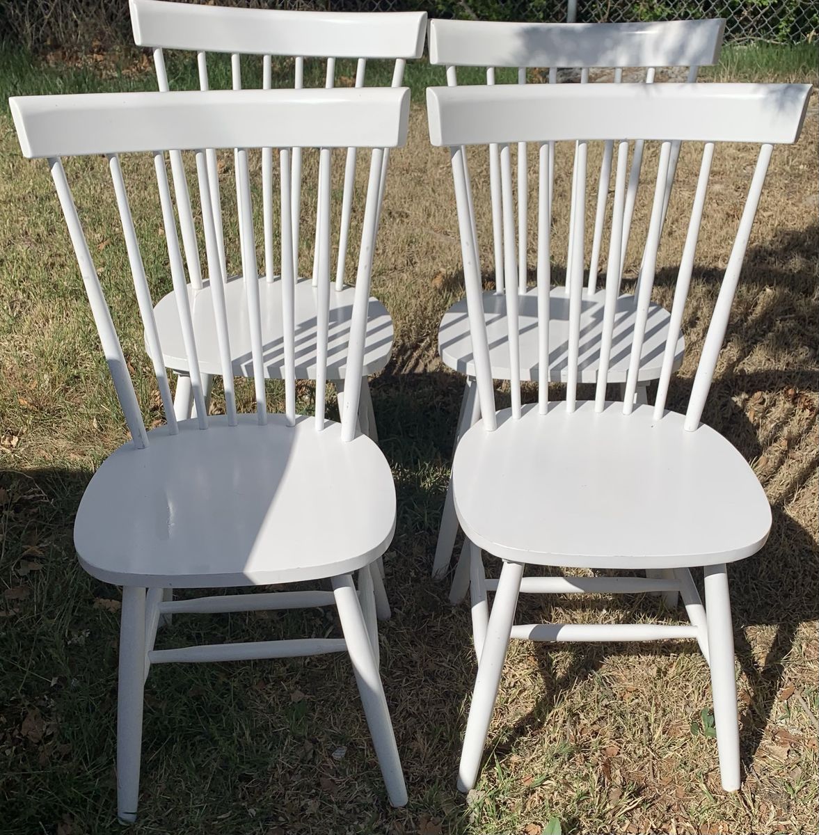 Beautiful set of 4 white Windsor farm style chairs 18 in from floor to seat Great condition Can deliver