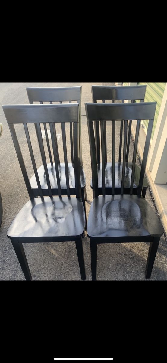 These are gorgeous black high back chairs 18 in from floor to seat 40 in tall 18 in wide Great sturdy condition Can deliver
