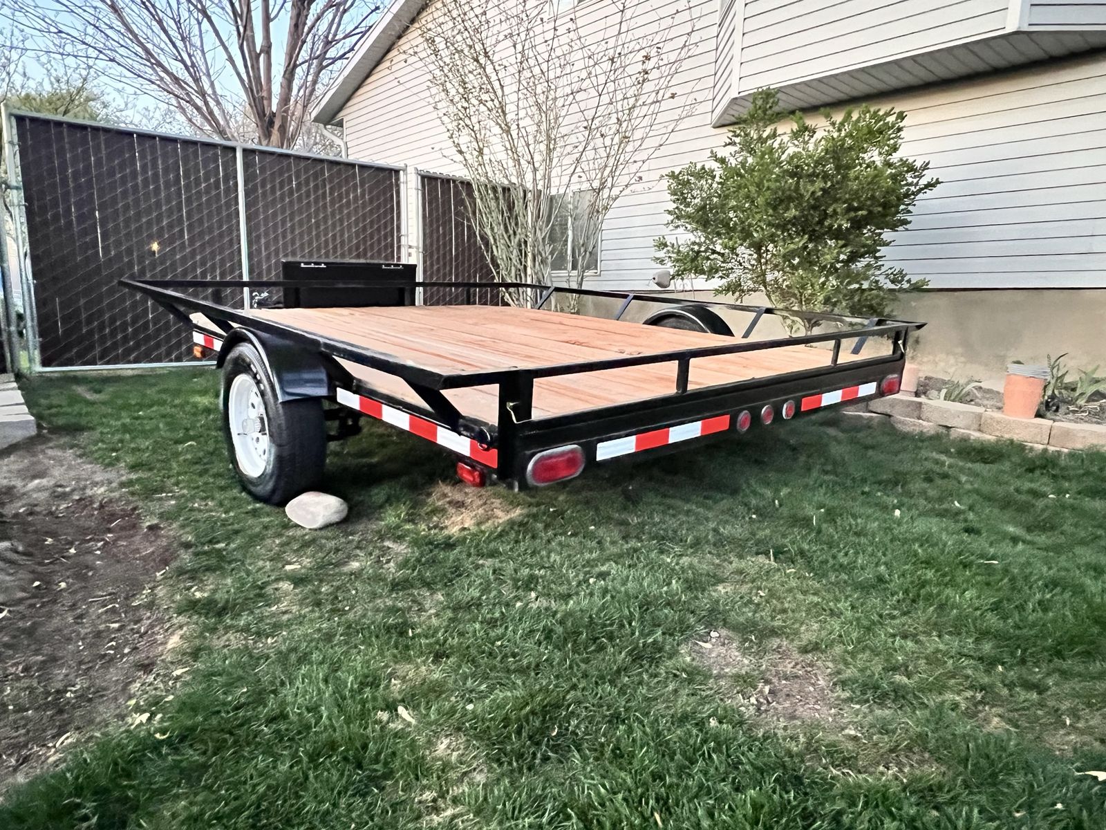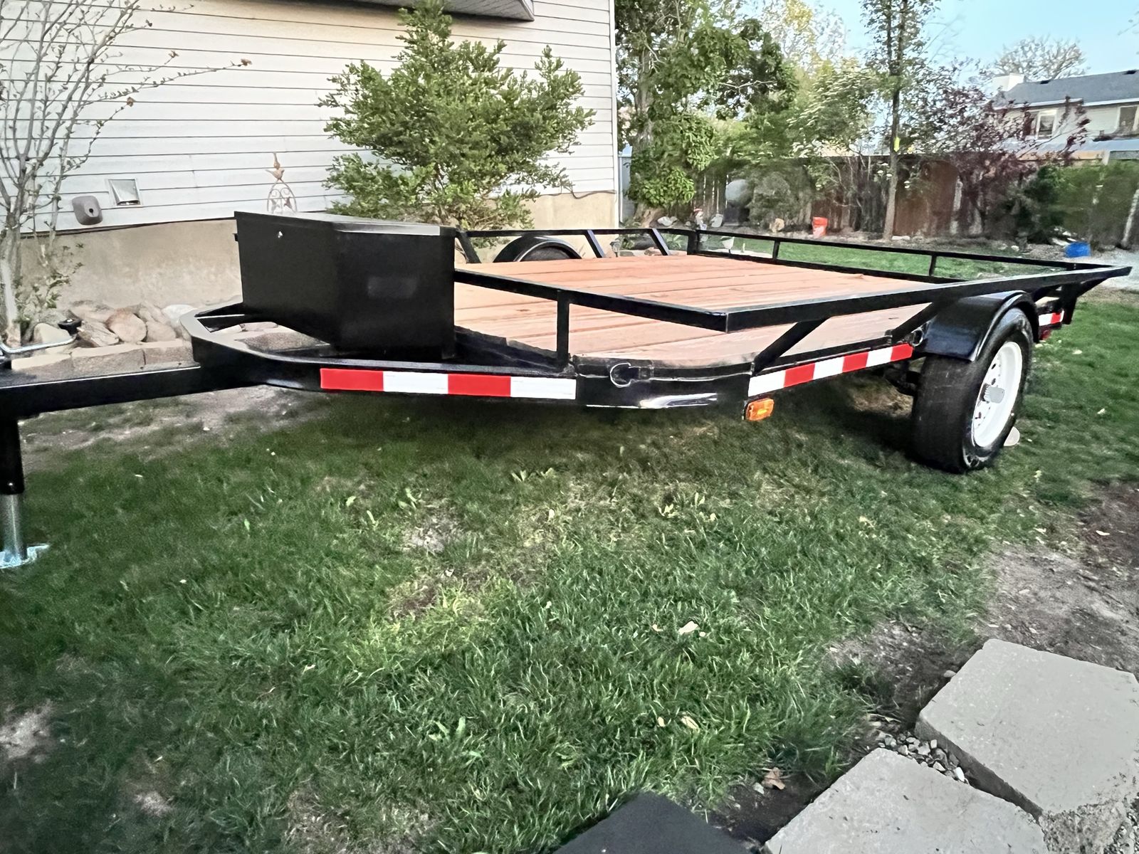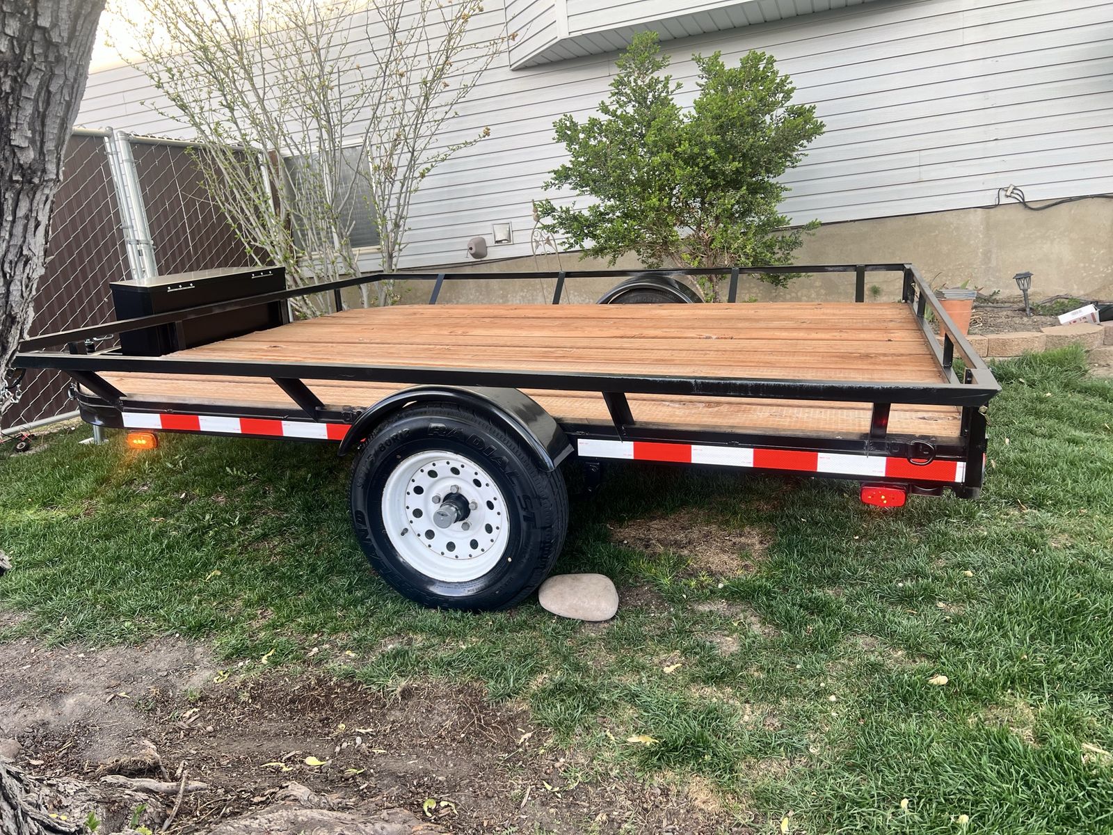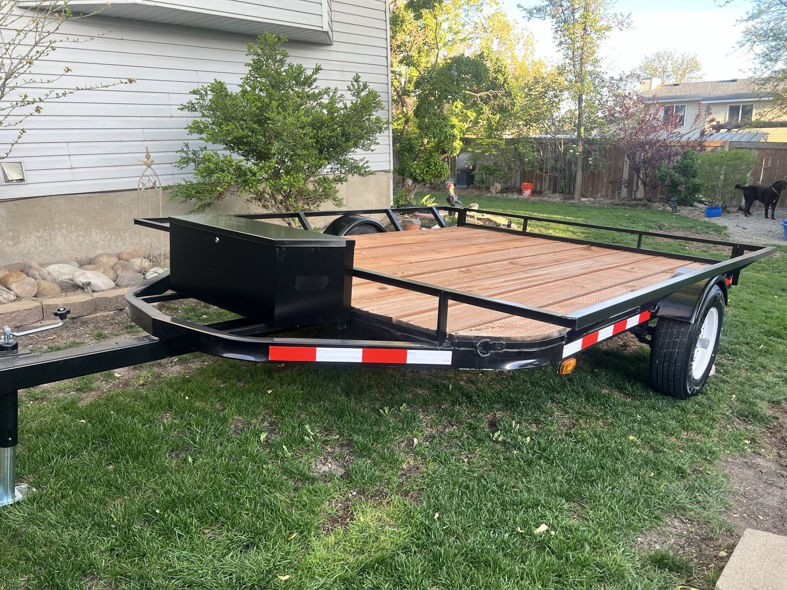 VenmoReliable, heavy-duty utility trailer built to handle real jobs while still light enough for one person to move around with ease. Perfect for hauling ATVs, UTVs, landscaping equipment, or everyday use. Recent Upgrades & Features: •Freshly packed wheel bearings with new bearing buddies •Brand new wiring throughout •New LED tail lights and marker lights •2 new tires •New 2,000 lb trailer jack with landing pad •New locking Haul-Master toolbox •New 2” coupler •New safety chains •Rear tailgate for easy loading •Newer treated wood deck