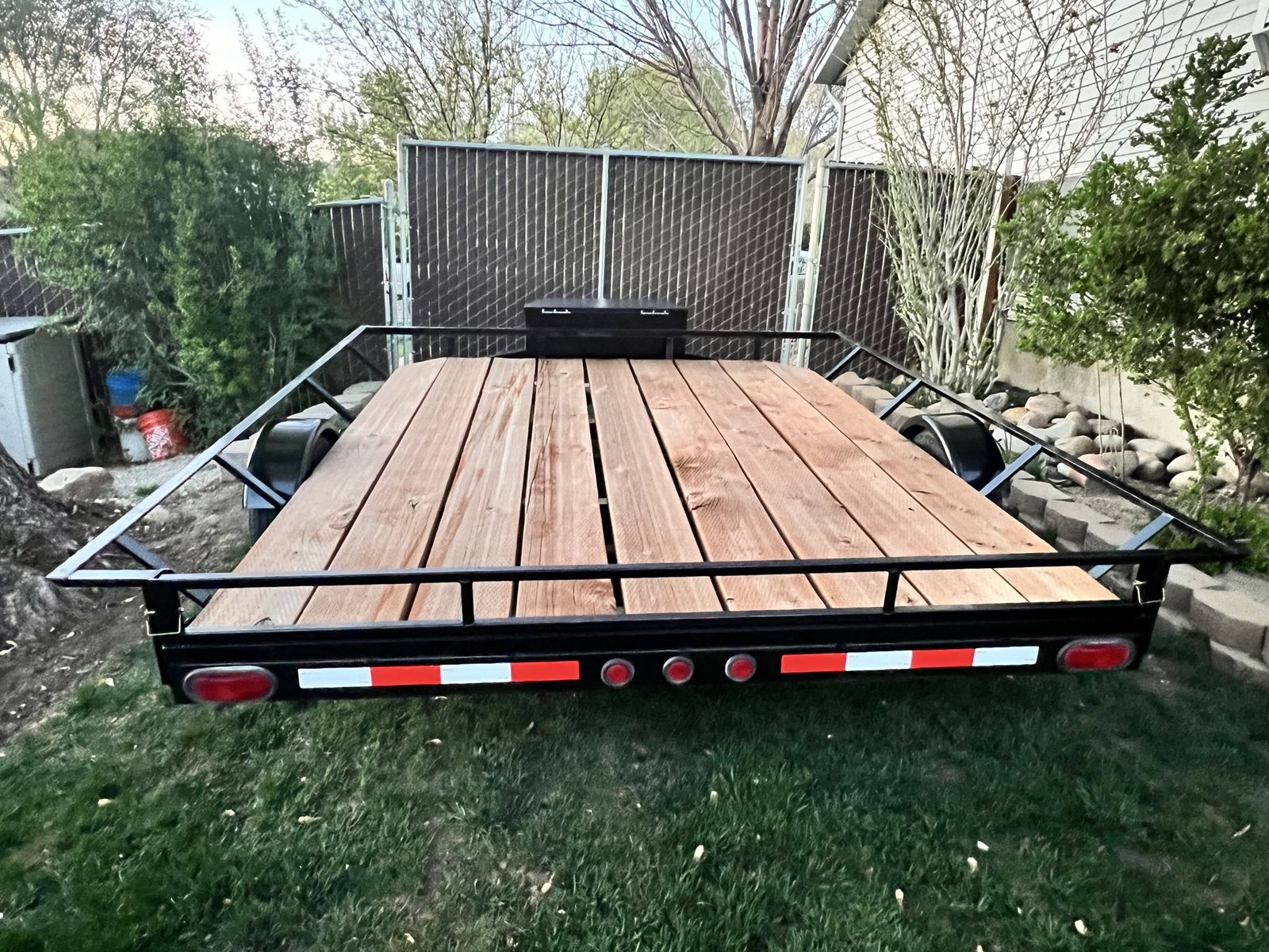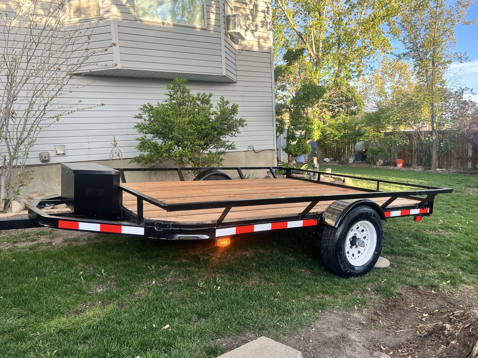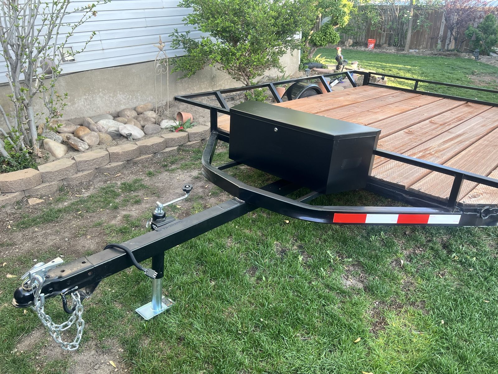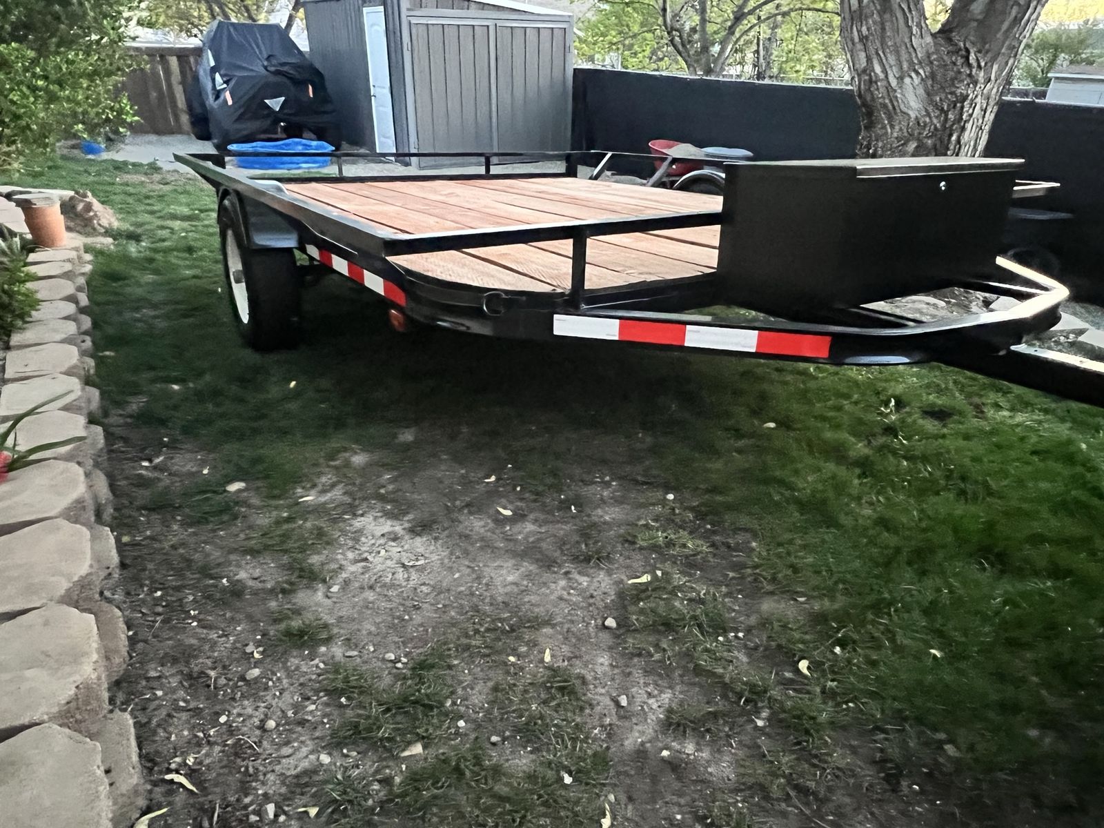 VenmoReliable, heavy-duty utility trailer built to handle real jobs while still light enough for one person to move around with ease. Perfect for hauling ATVs, UTVs, landscaping equipment, or everyday use. Recent Upgrades & Features: •Freshly packed wheel bearings with new bearing buddies •Brand new wiring throughout •New LED tail lights and marker lights •2 new tires •New 2,000 lb trailer jack with landing pad •New locking Haul-Master toolbox •New 2” coupler •New safety chains •Rear tailgate for easy loading •Newer treated wood deck