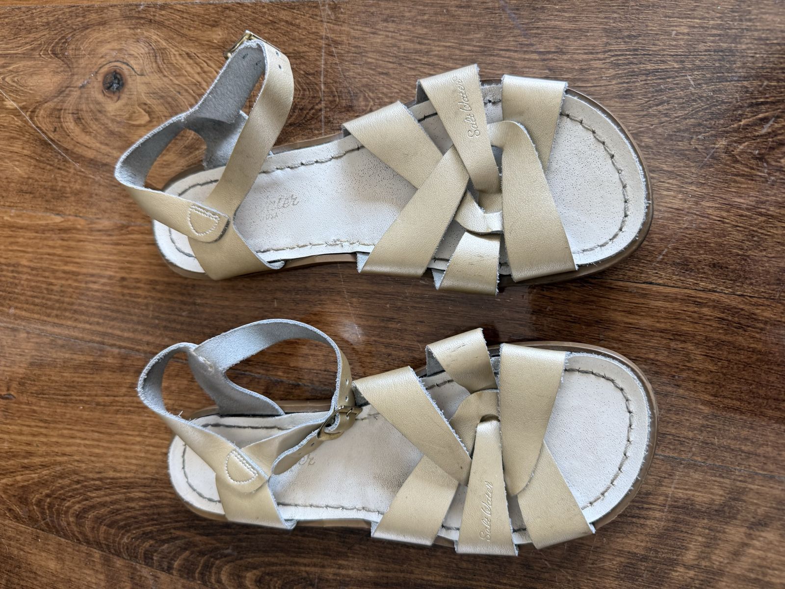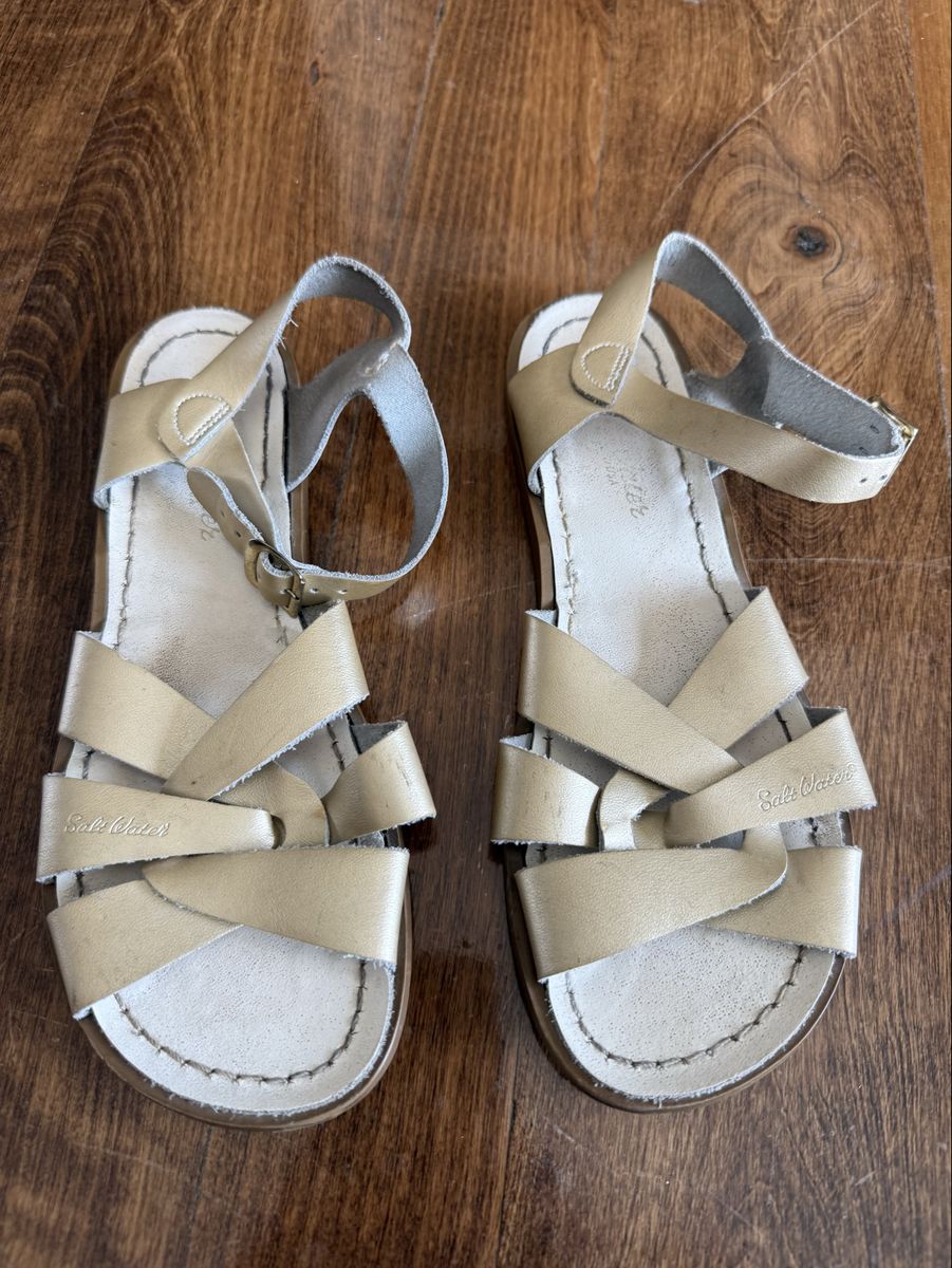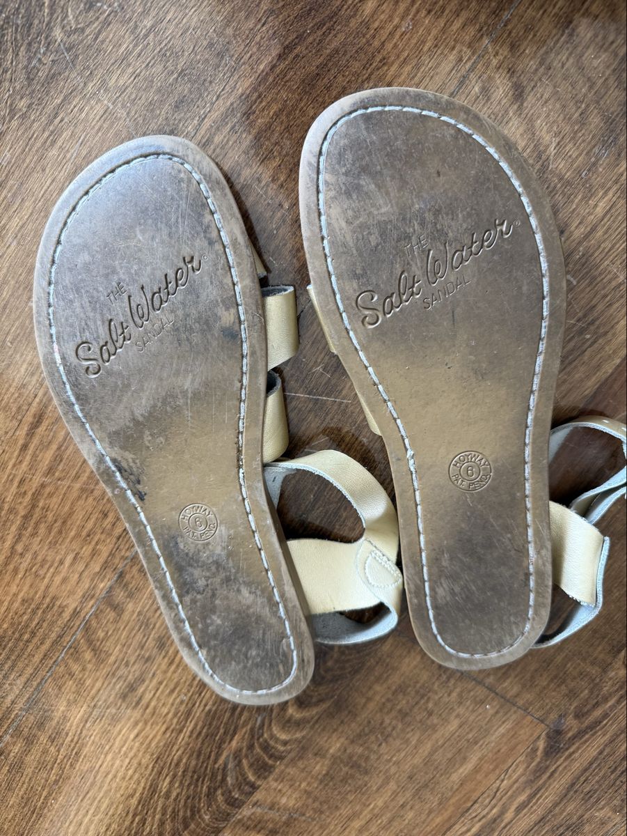 Women’s gold salt water sandals size 8 tag on bottom says #6