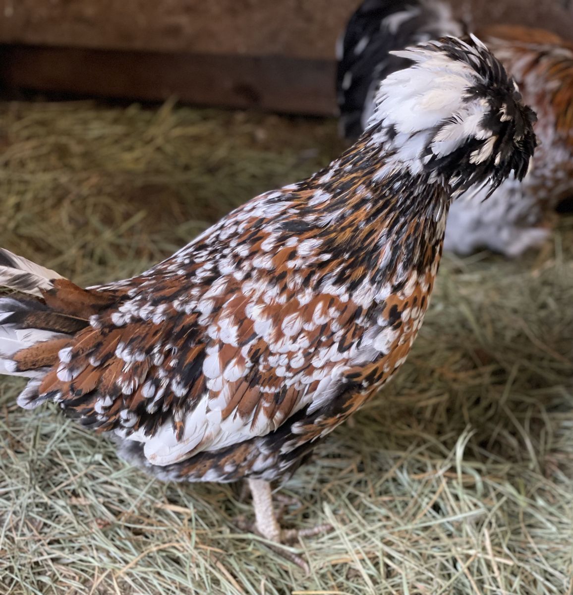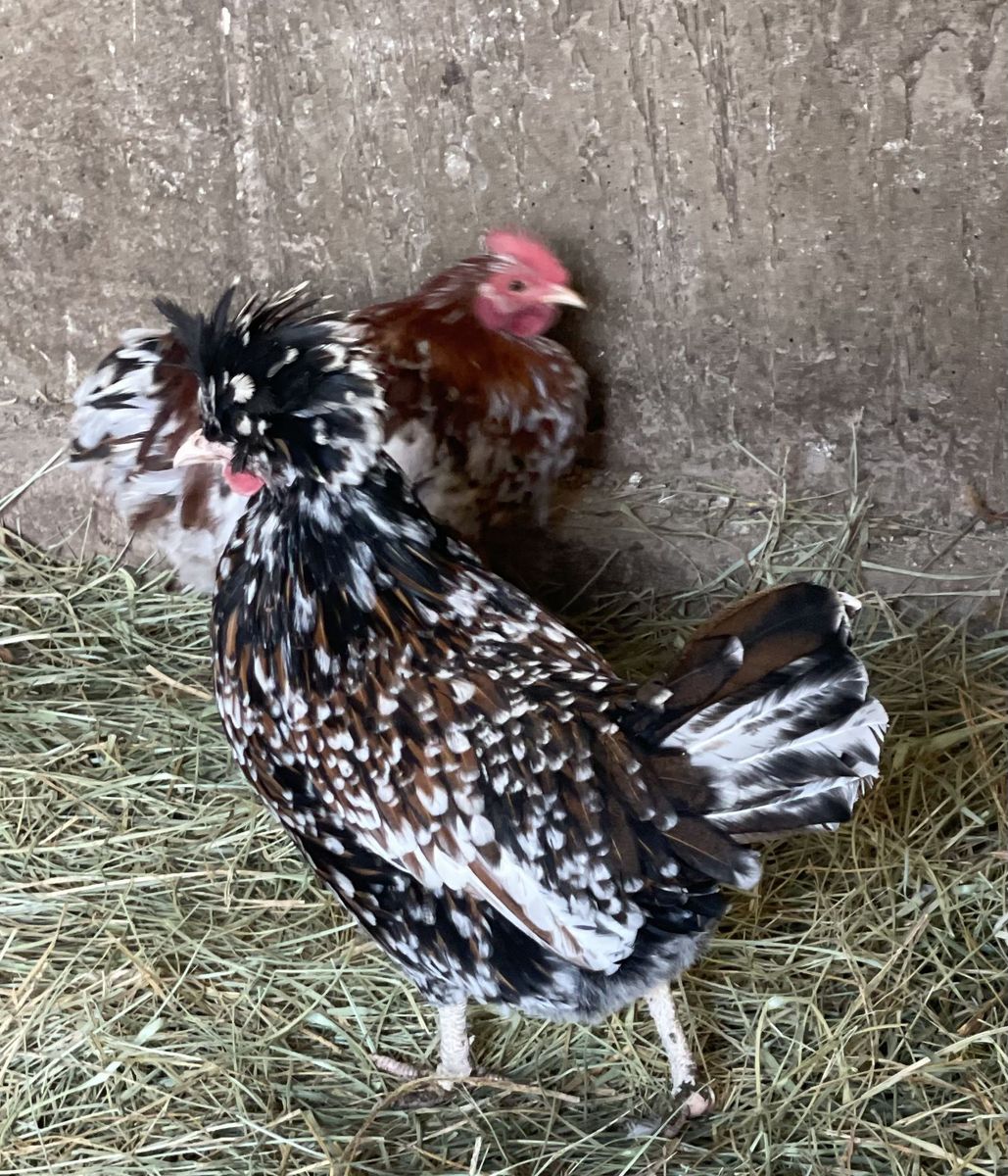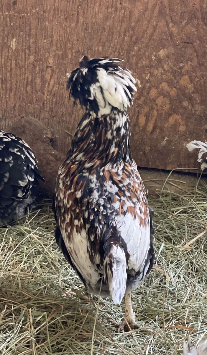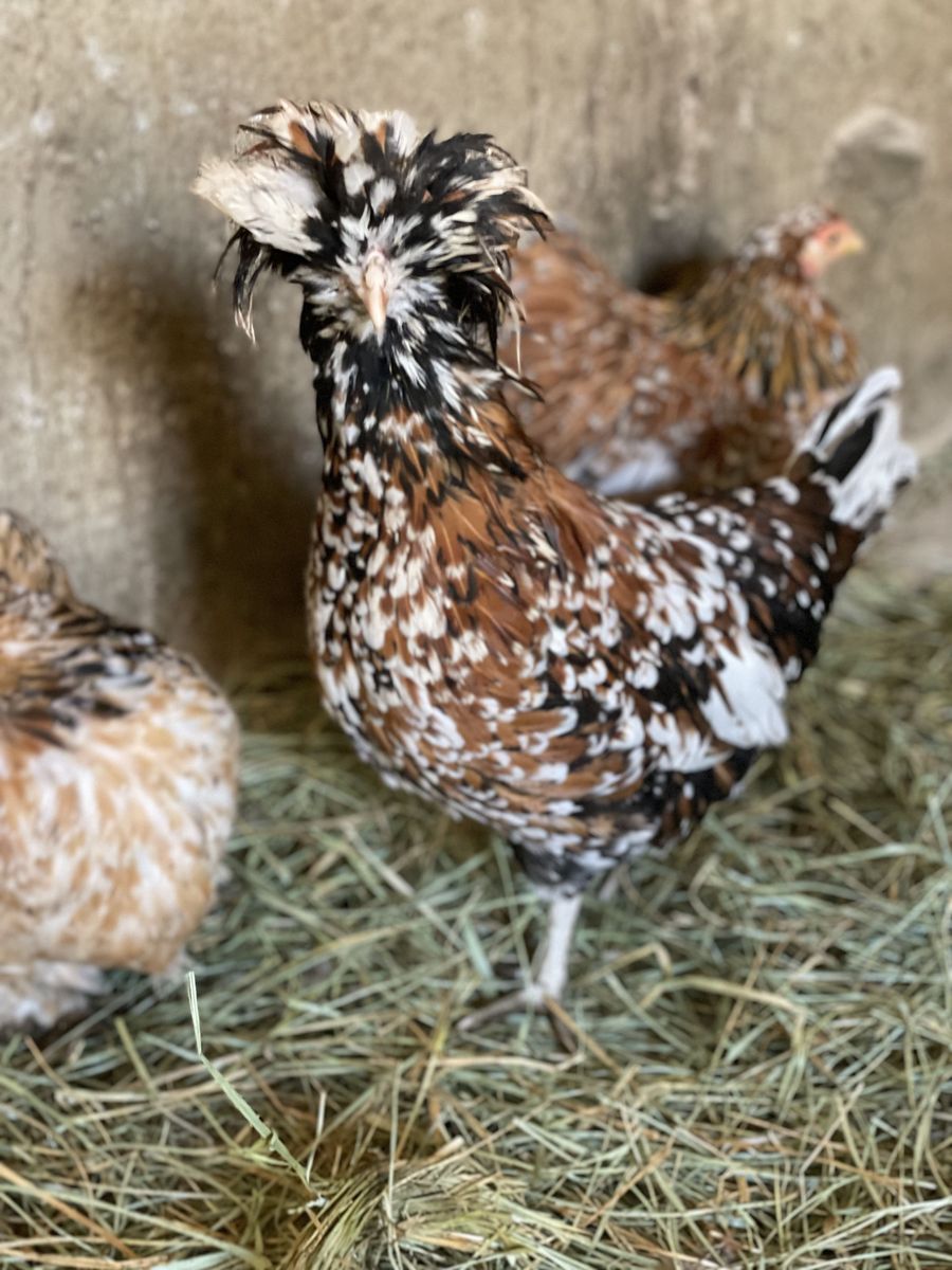 ZelleWe have 10 Purbred Tolbunt Polish Hens Pullets. All hatched here last year 2025. All from same rooster but have multipal mothers. We have 2 Fizzel hens not photographed yet. These hens are all just now starting to lay eggs. Great Great feather and condition.