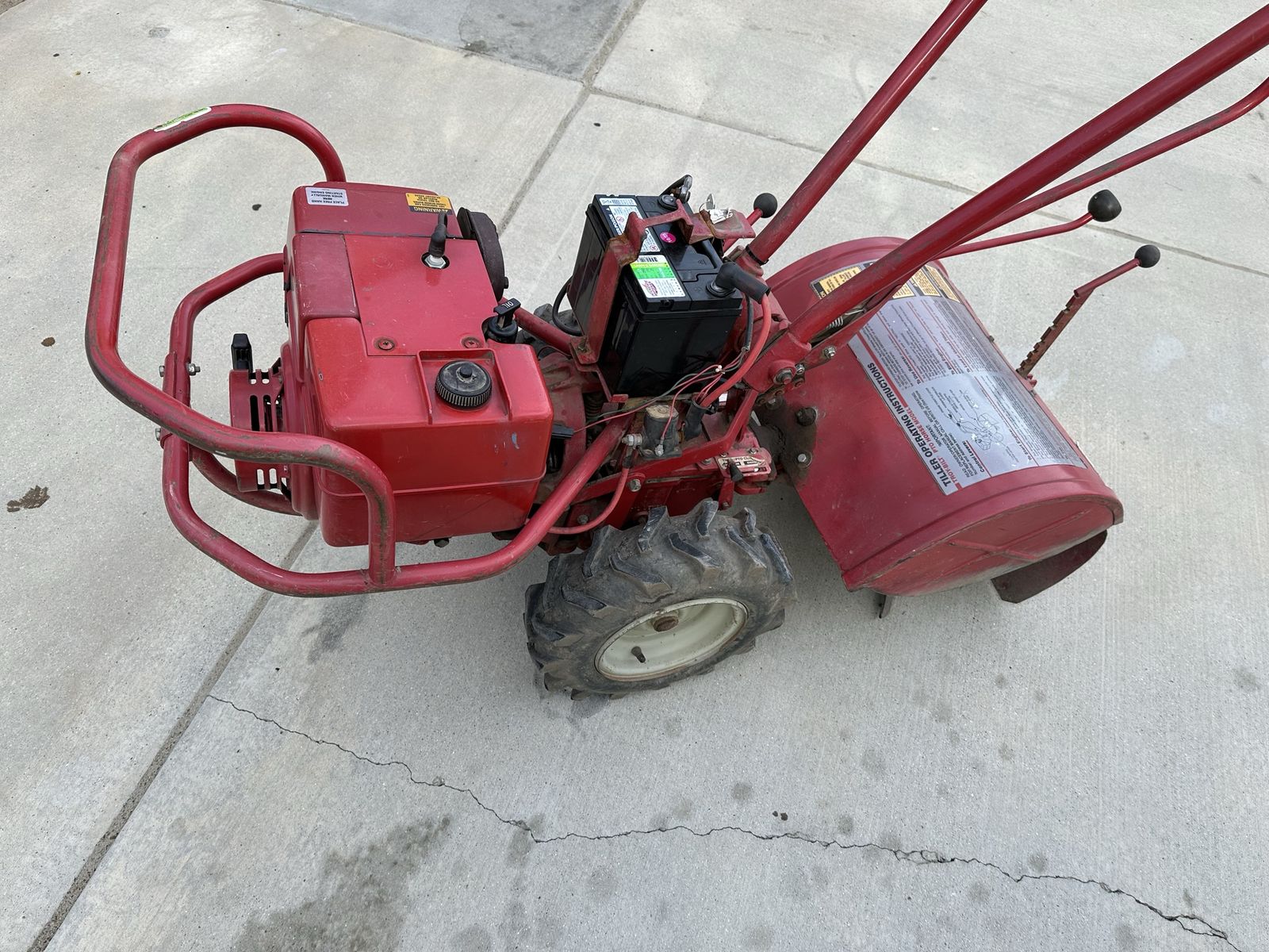 Selling a powerhouse Troy-Bilt Horse rear-tine tiller in excellent working condition. This is the heavy-duty "PTO" style model built to last a lifetime. Key Features: • Engine: 8HP Kohler Magnum (Cast Iron Block) – runs strong and has much more torque than modern engines. • Electric Start: Starts right up with the turn of a key (also has recoil backup). • Recent Maintenance: Just installed a brand-new battery and a new reverse disc (common wear item, now fresh for the season). • Transmission: Rugged cast-iron gear-driven transmission with 4 forward and 2 reverse speeds. • Design: "Just One Hand" operation—perfectly balanced so it doesn't jump or pull while tilling. Tines are in great shape and ready to break ground. This is a "Big Red" class machine that handles tough sod and garden prep with ease.