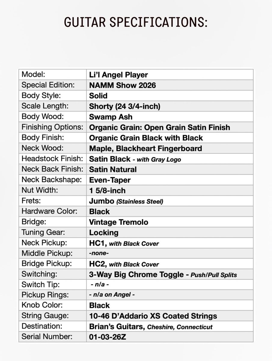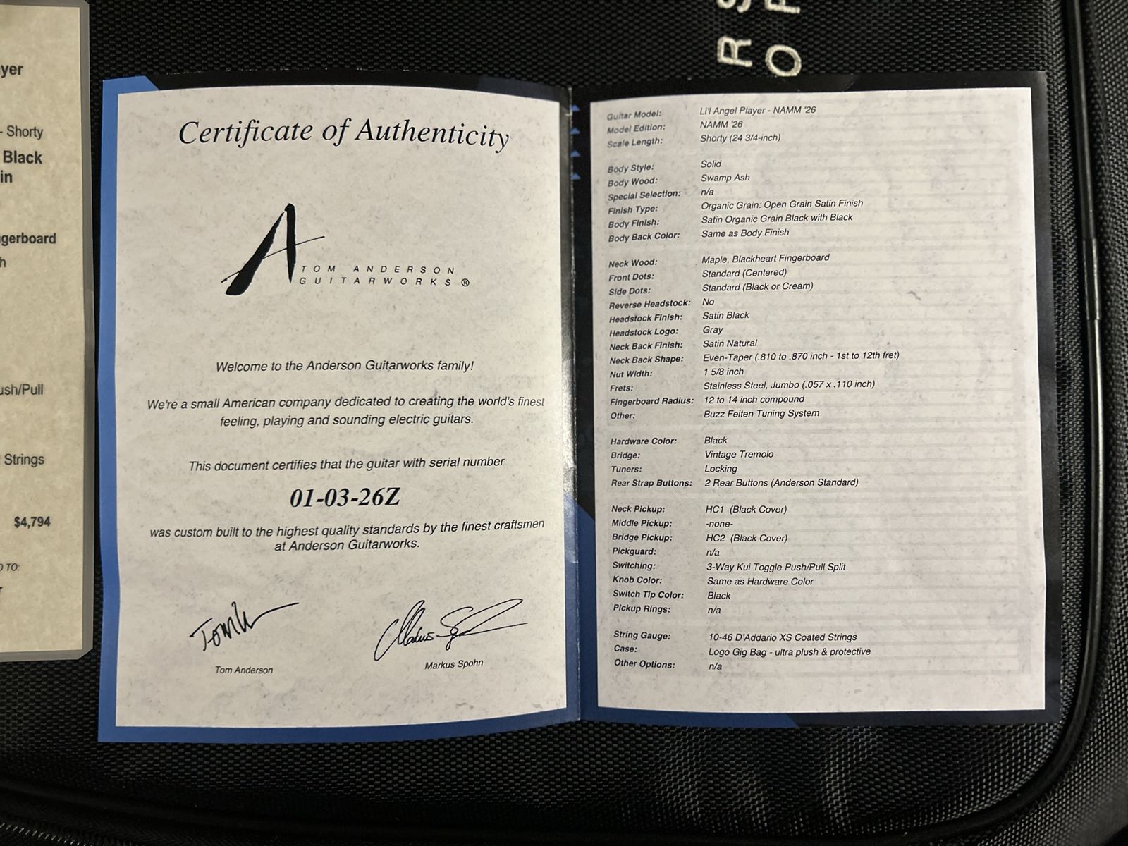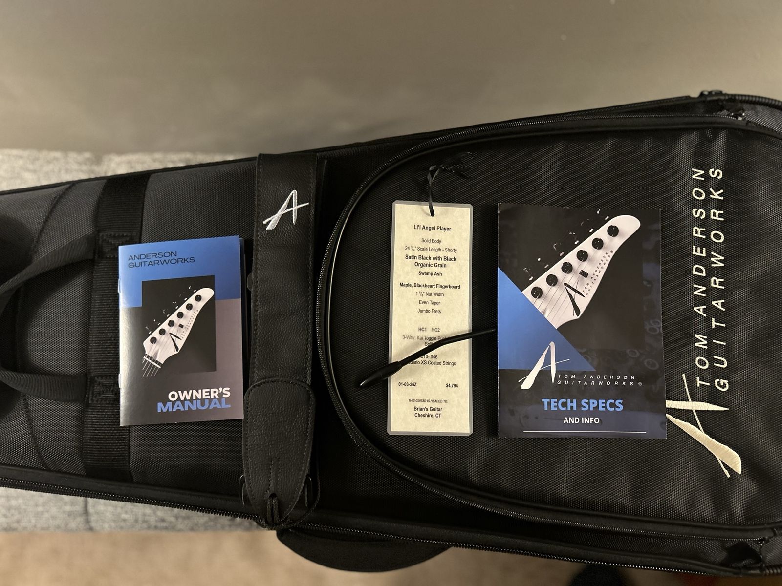 VenmoUp for grabs is an Anderson Guitarworks Lil Angel Player. This organic black, with an open pore finish, tone monster was a showpiece at the NAMM Show earlier this year and was featured on Anderson website (link provided below). I purchased this guitar from the original dealer, Brian’s Guitars (price was $4,794). Full specs are provided in the images. The guitar weighs approximately 6.25lbs - a lightweight example and very resonant.