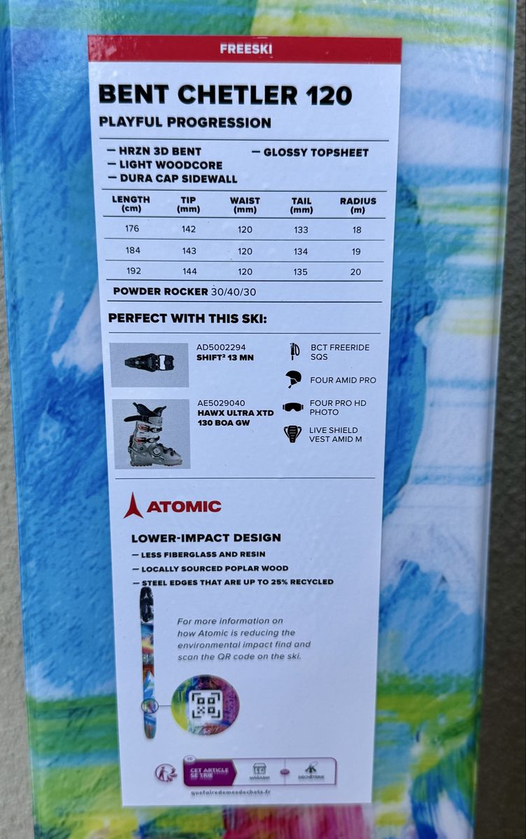 PayPal2025/2026 Atomic Bent Chetler 120, 176cm For Sale.