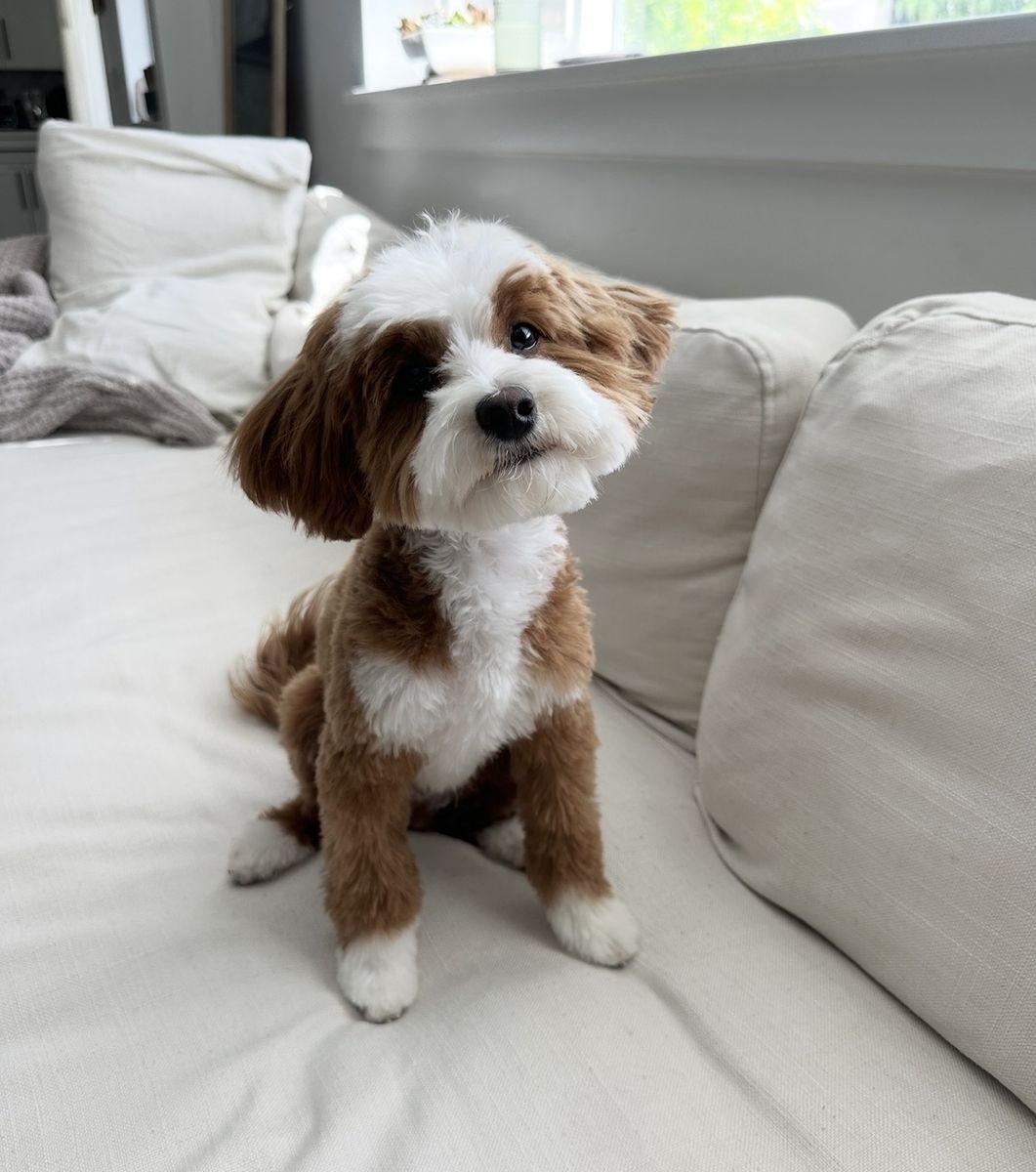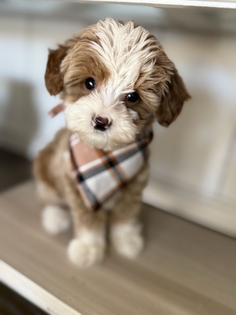 Meet Charlie, our 7 lb tuxedo Micro Goldendoodle stud with a heart as big as his personality!