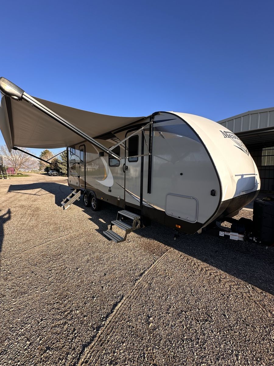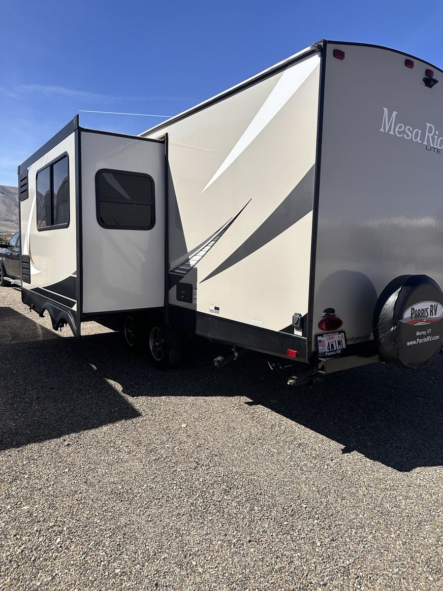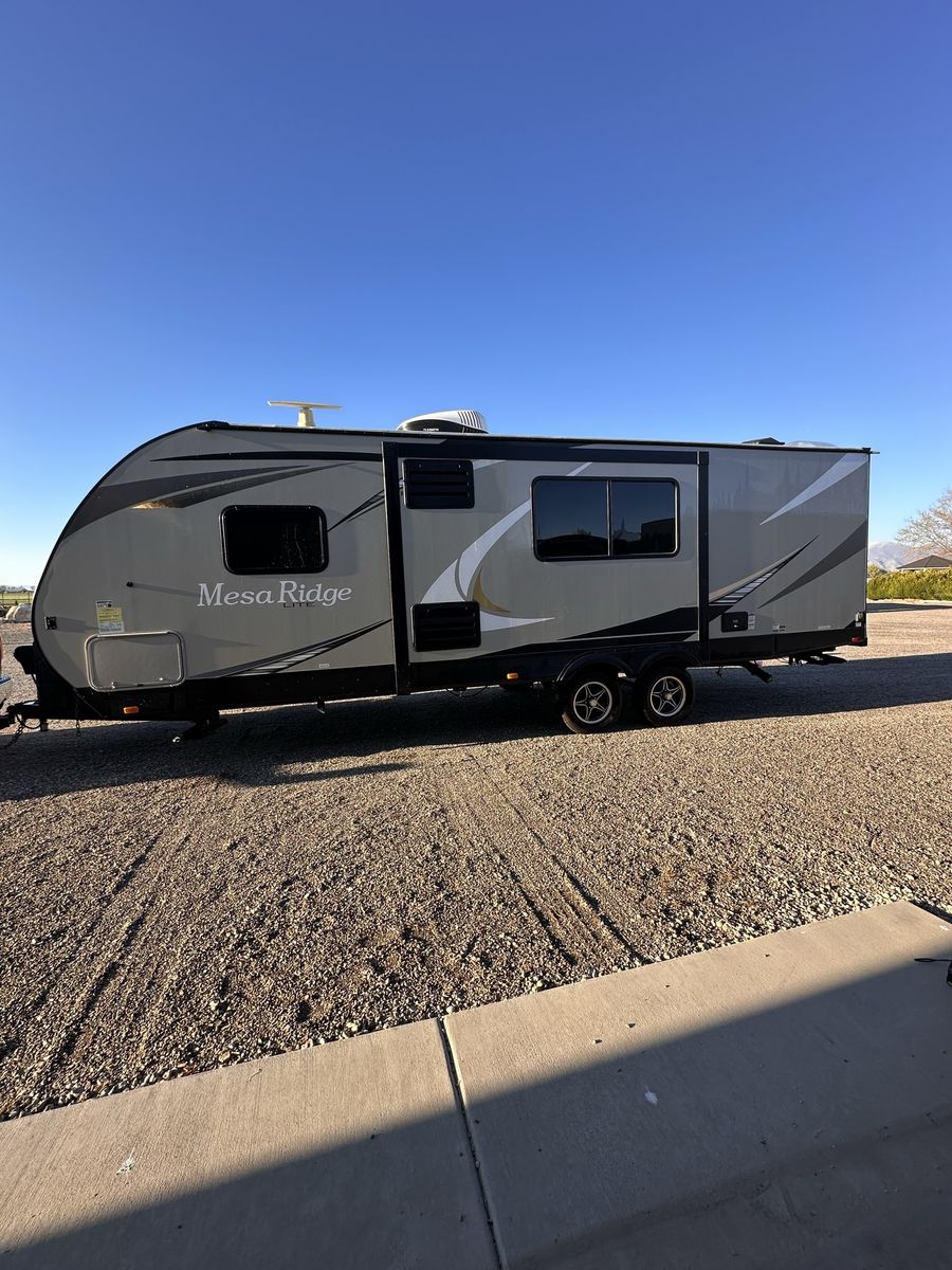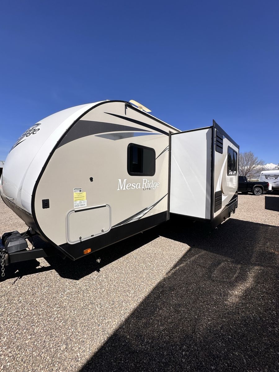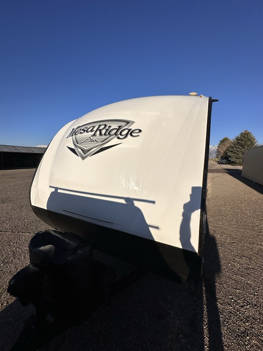 2021 Mesa Ridge Lite 2402BH Travel Trailer Very nice trailer. Great layout! Gently used Always Garage stored. Cleaned inside and out after every use. Winterized every year. 8 cu. ft. Refrigerator Quick Recovery Gas/Electrical Water Heater 15K A/C with Quiet Residential Return Air Prepped for Observation Camera Solid Swing Down Step Power Awning with LED Lighting & Speakers Stainless Steel Appliances Stainless Steel Under Mount Sink Outside Enclosed Docking Station Motion Light in Pass-through Storage Area Battery Disconnect Solar Prep Queen Mattress (60" x 80") Seamless Countertops Throughout Linoleum Throughout Flooring (No Carpet) PVC Roofing Membrane (15 Year Warranty/ Non-Prorated) Porcelain Toilet