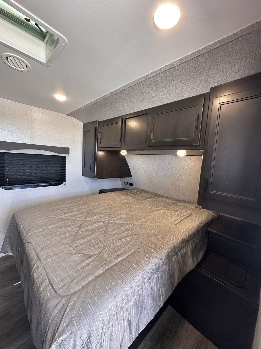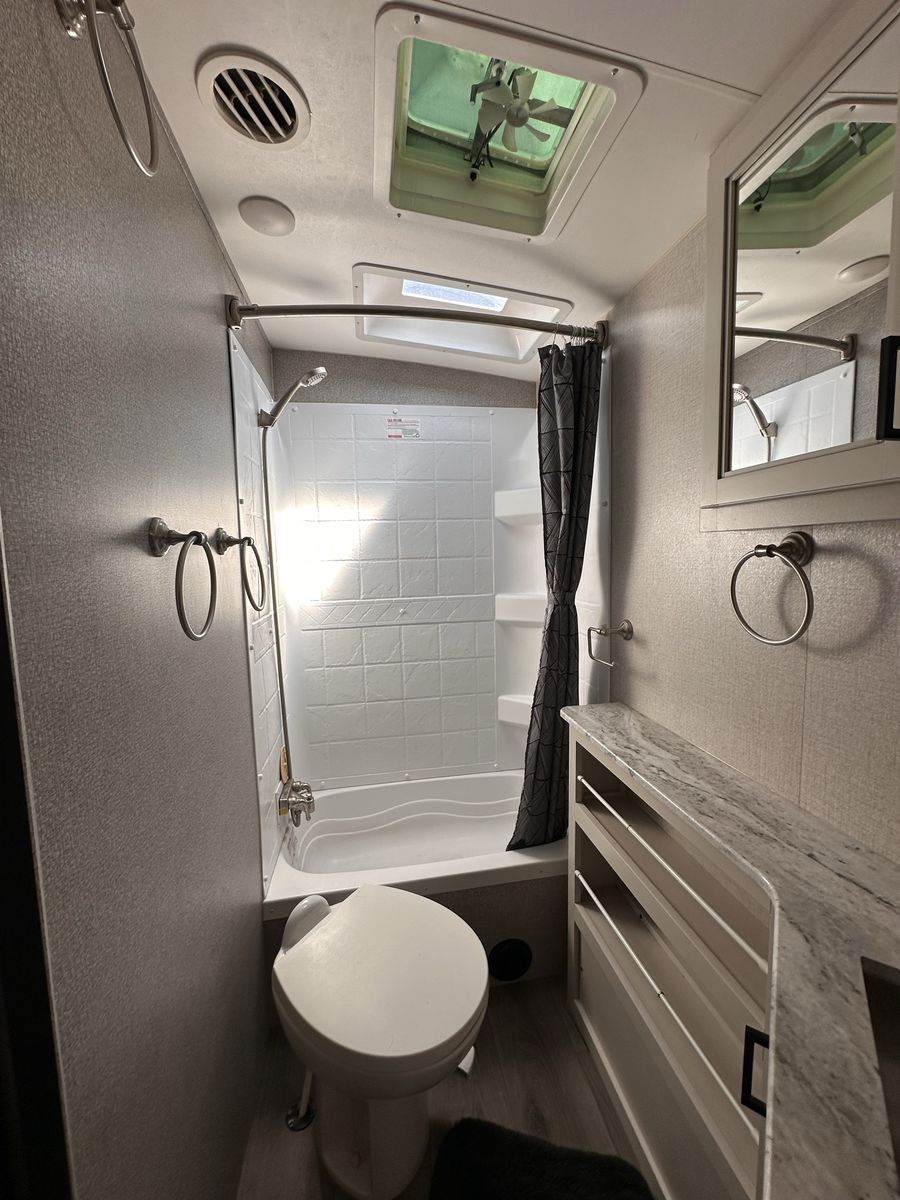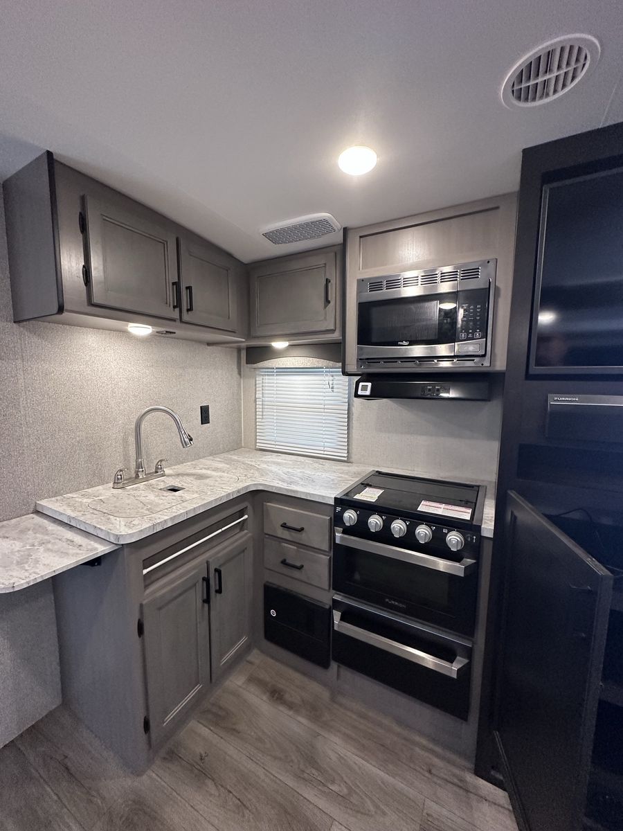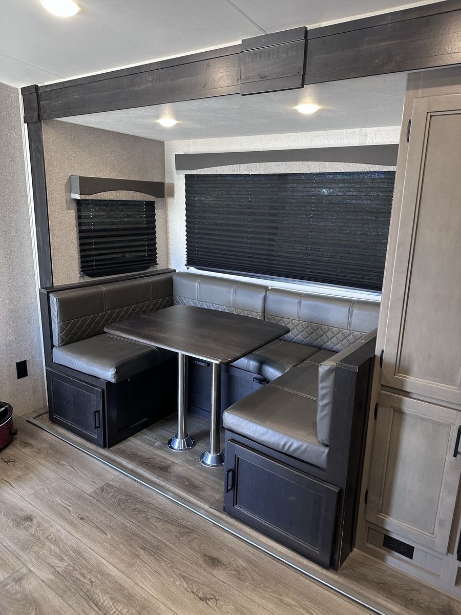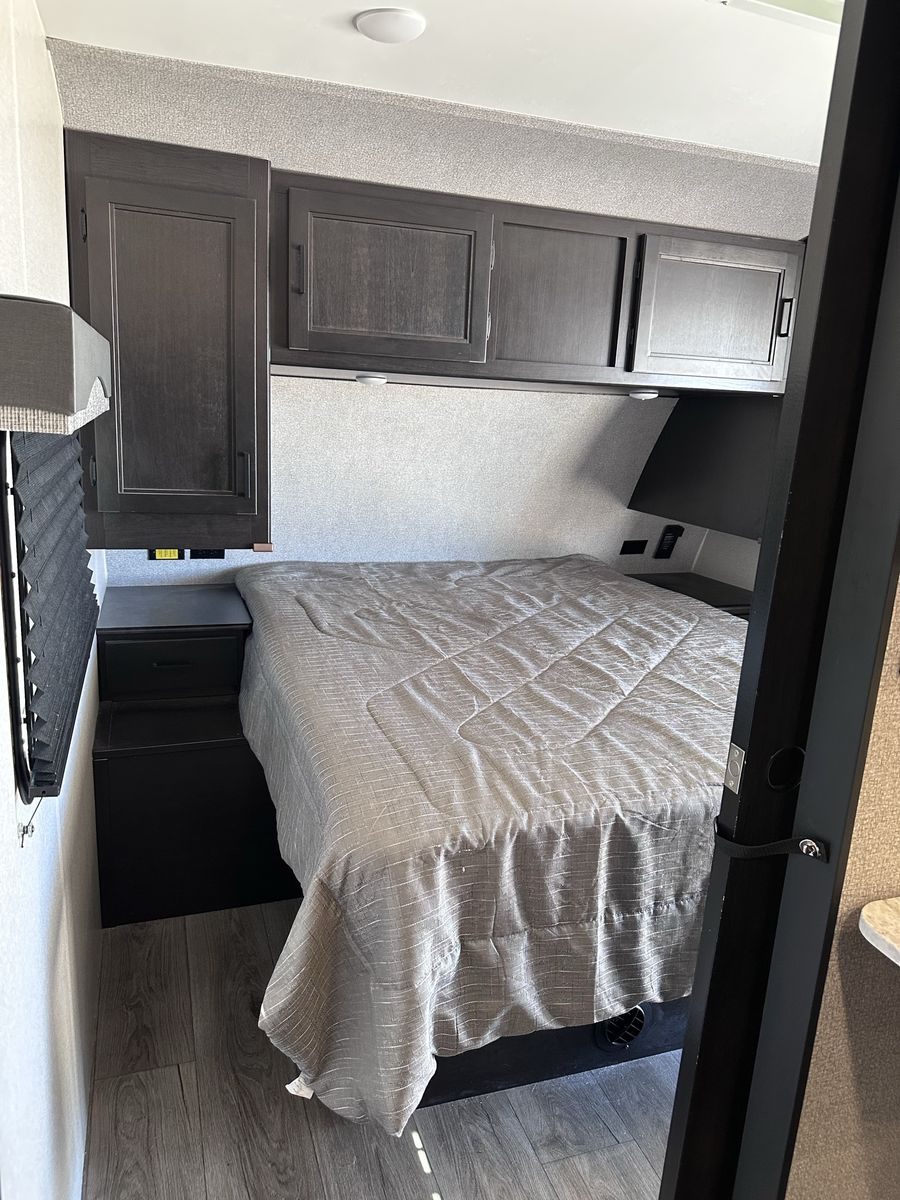 2021 Mesa Ridge Lite 2402BH Travel Trailer Very nice trailer. Great layout! Gently used Always Garage stored. Cleaned inside and out after every use. Winterized every year. 8 cu. ft. Refrigerator Quick Recovery Gas/Electrical Water Heater 15K A/C with Quiet Residential Return Air Prepped for Observation Camera Solid Swing Down Step Power Awning with LED Lighting & Speakers Stainless Steel Appliances Stainless Steel Under Mount Sink Outside Enclosed Docking Station Motion Light in Pass-through Storage Area Battery Disconnect Solar Prep Queen Mattress (60" x 80") Seamless Countertops Throughout Linoleum Throughout Flooring (No Carpet) PVC Roofing Membrane (15 Year Warranty/ Non-Prorated) Porcelain Toilet