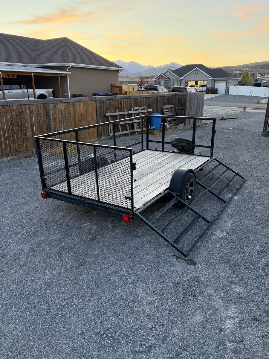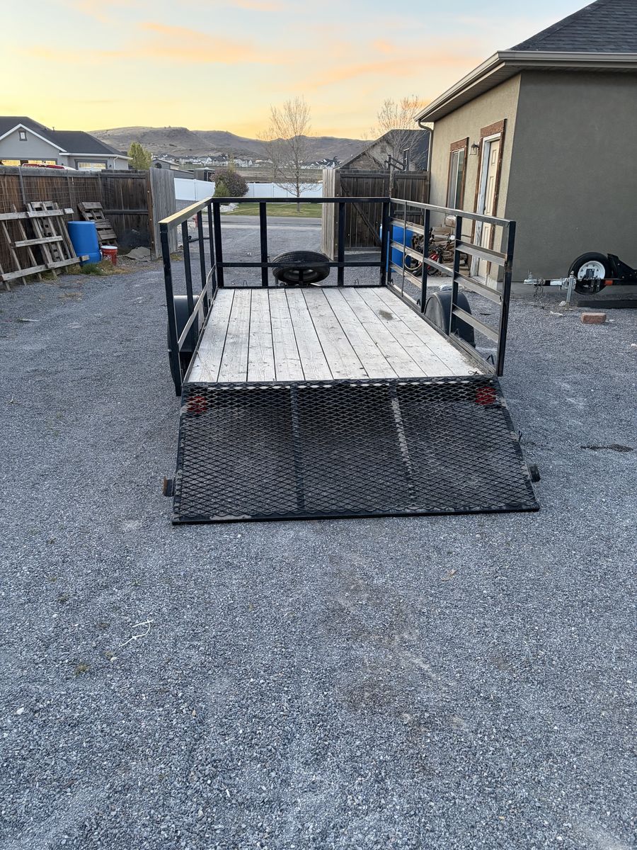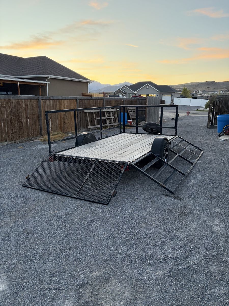 Selling my trailer because I have too many and I don’t use them. This trailer is very unique because it has the high sides all the way around with one side that folds down to use as a ramp, as well as the back that folds down for a ramp . The deck measurements are 76x142 inches, the sides are 37.5 inches high. Asking $1800. This trailer has been amazing for hauling our four-wheelers, moving furniture, and dump runs.
