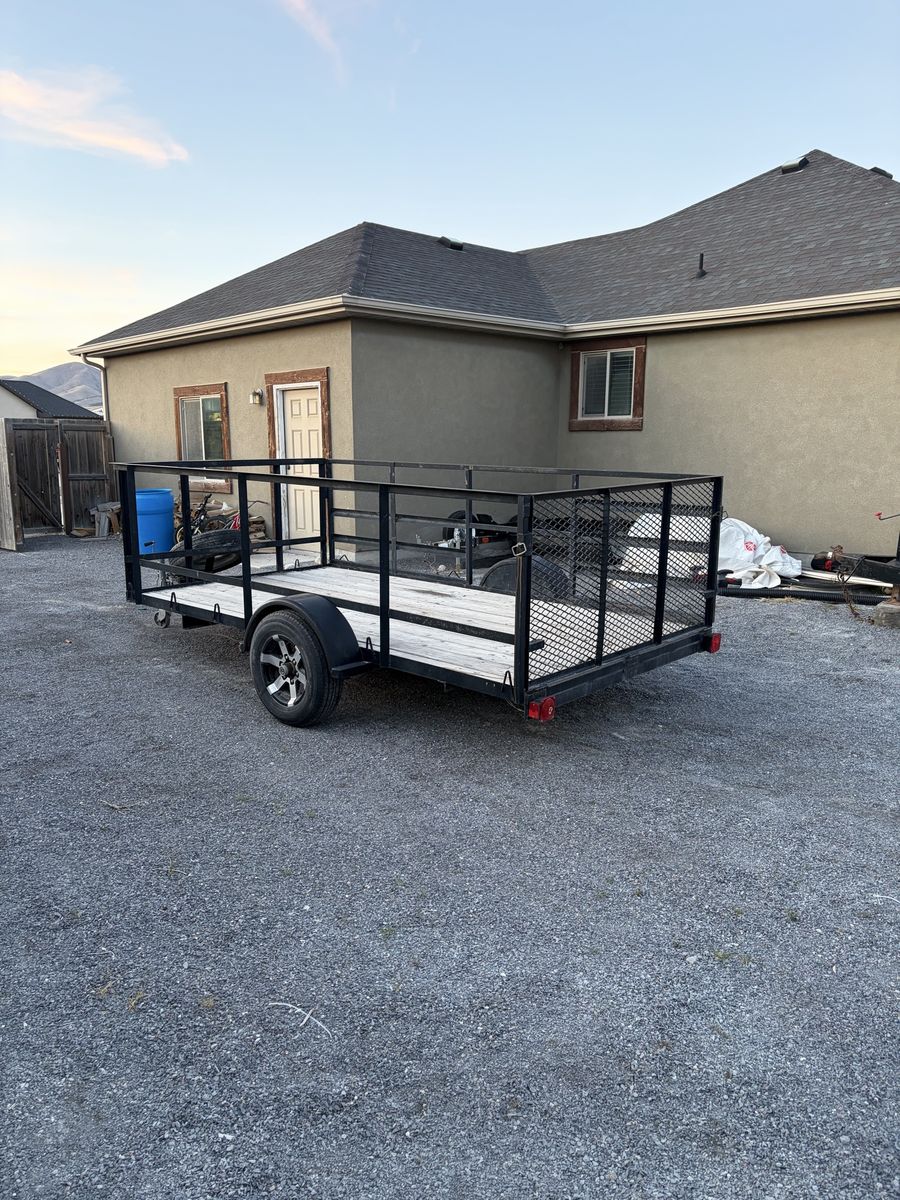 Selling my trailer because I have too many and I don’t use them. This trailer is very unique because it has the high sides all the way around with one side that folds down to use as a ramp, as well as the back that folds down for a ramp . The deck measurements are 76x142 inches, the sides are 37.5 inches high. Asking $1800. This trailer has been amazing for hauling our four-wheelers, moving furniture, and dump runs.