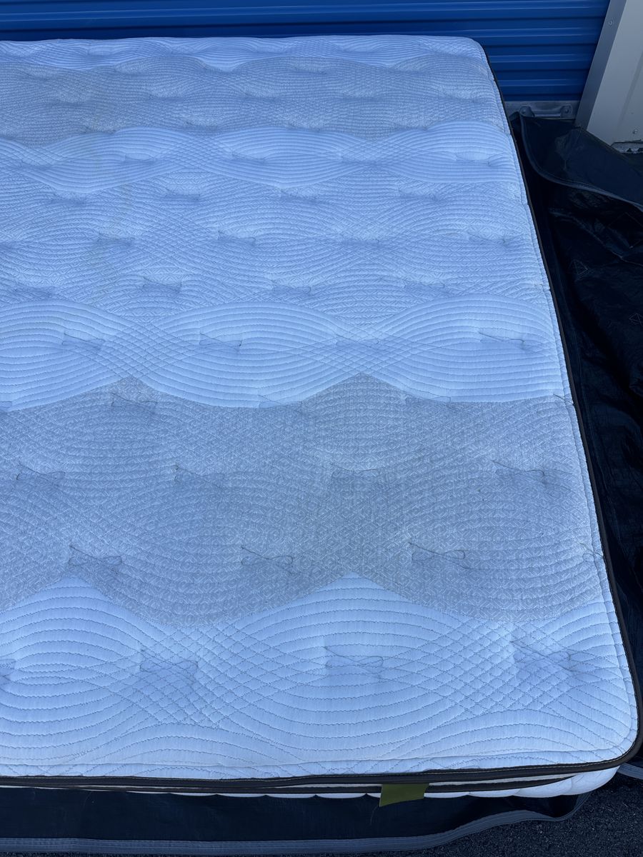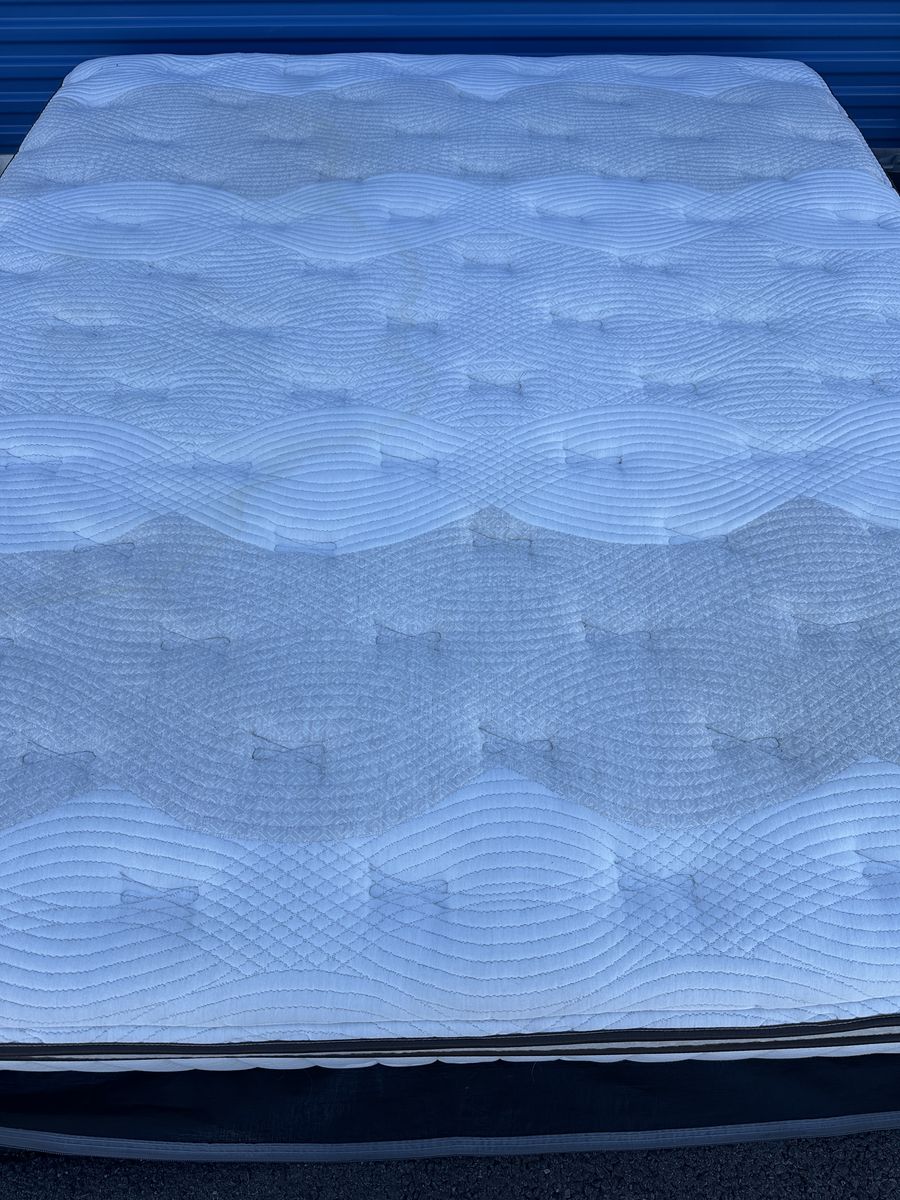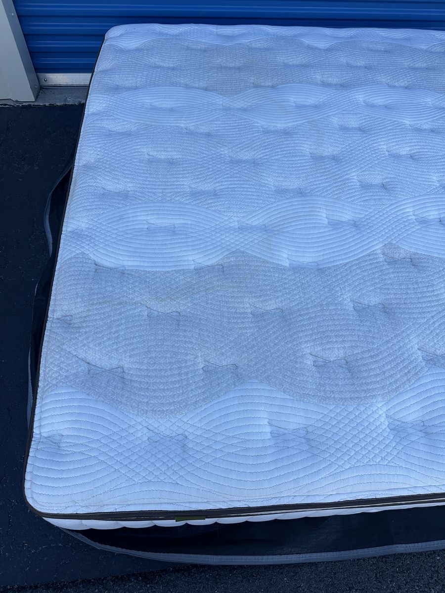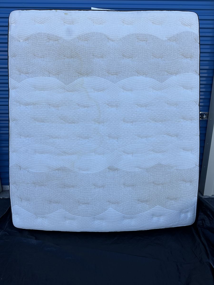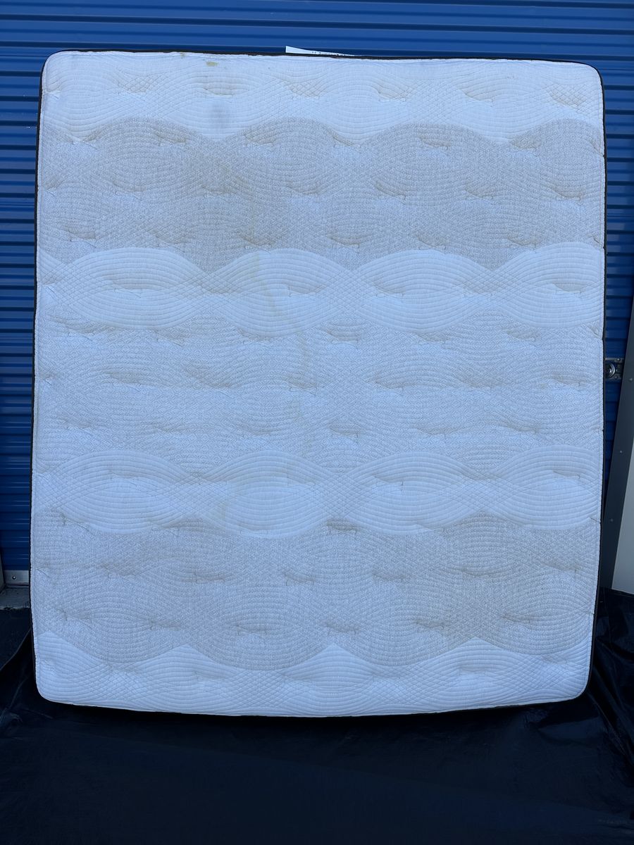 Check out this high end luxury 15" California king Kingsdown mattress. Overall, it is in great condition. There are some noticeable signs of imperfections,a light water stain on the front, some signs of use, etc.