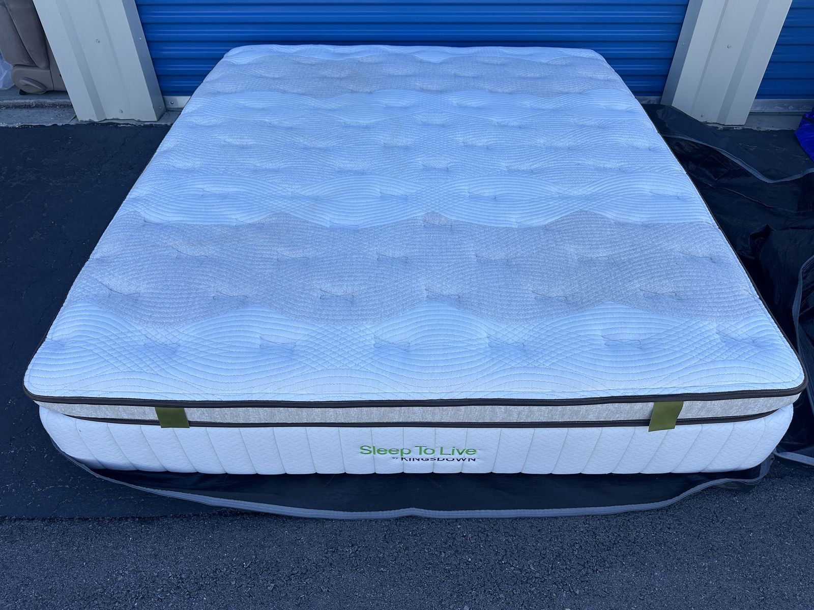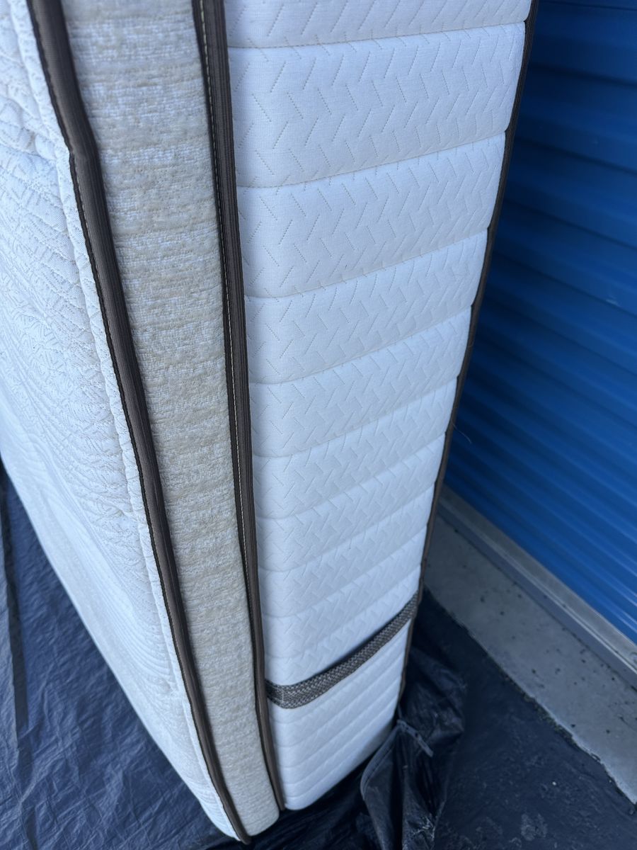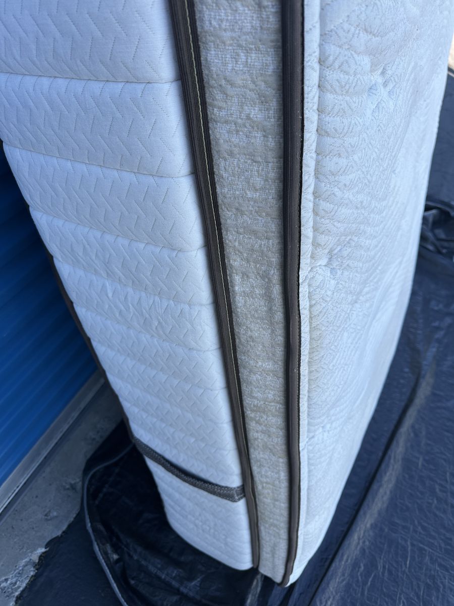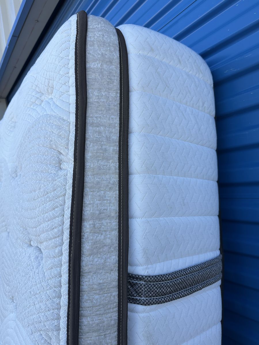 Check out this high end luxury 15" California king Kingsdown mattress. Overall, it is in great condition. There are some noticeable signs of imperfections,a light water stain on the front, some signs of use, etc.