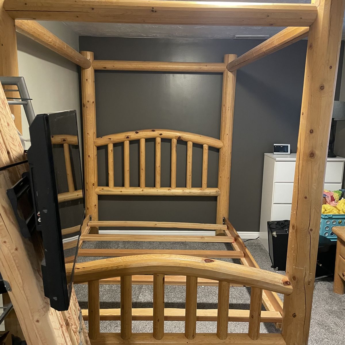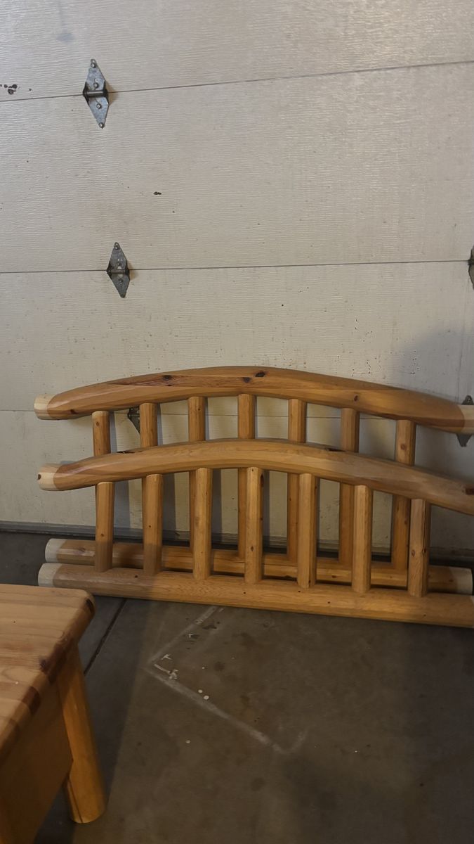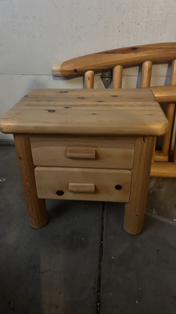VenmoSturdy queen size canopy log bed with matching nightstand. Has been taken apart and ready for pick up. Cash and Venmo only.