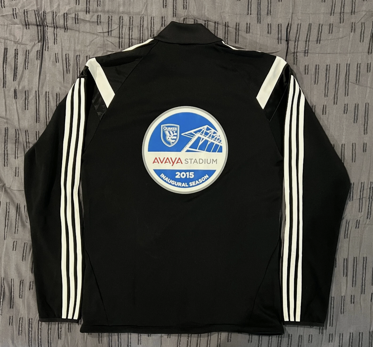 ApplePayRare Adidas San Jose Earthquakes track jacket from the 2015 Avaya Stadium inaugural season. Employee-issued only — never sold to the public. Features Climacool technology, full zip, zippered pockets, and a large commemorative inaugural season graphic on the back. Men's Medium, unisex fit.