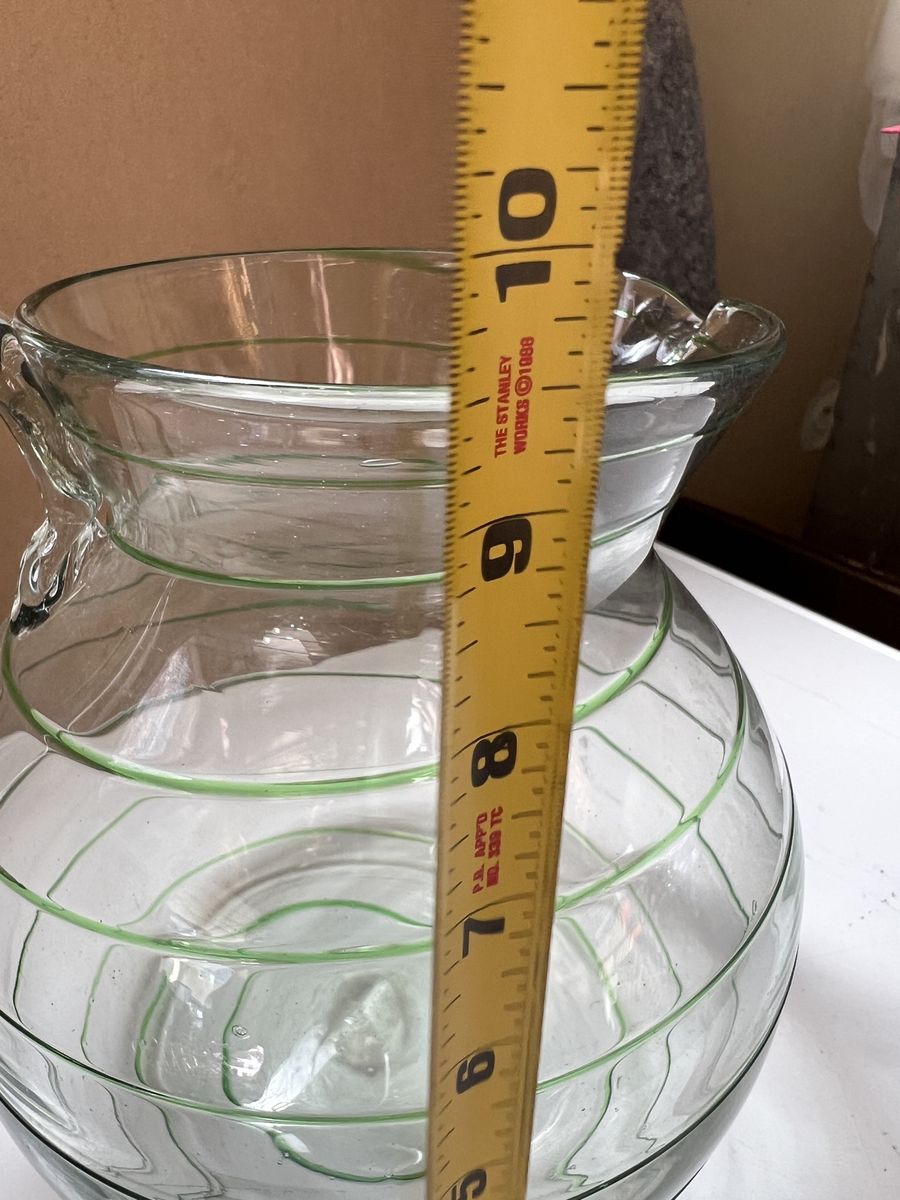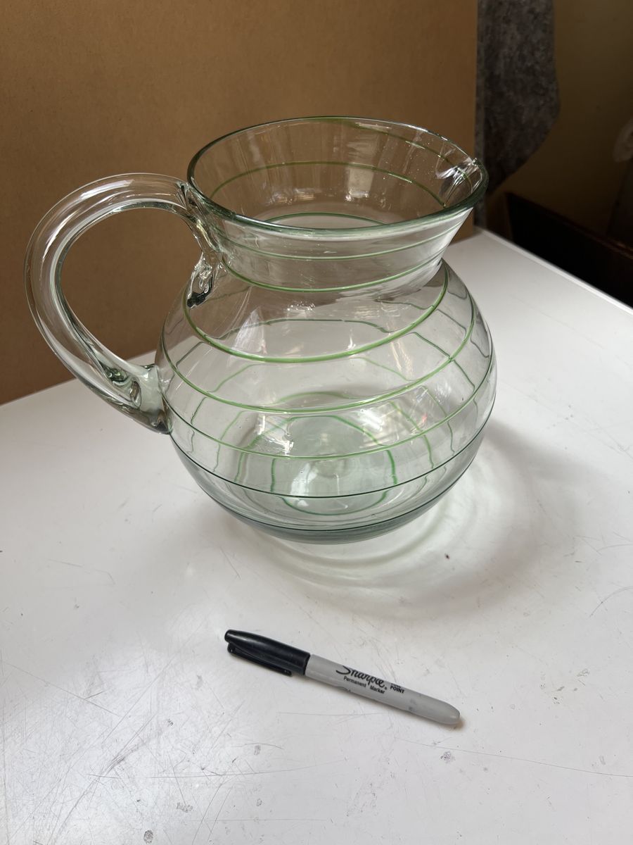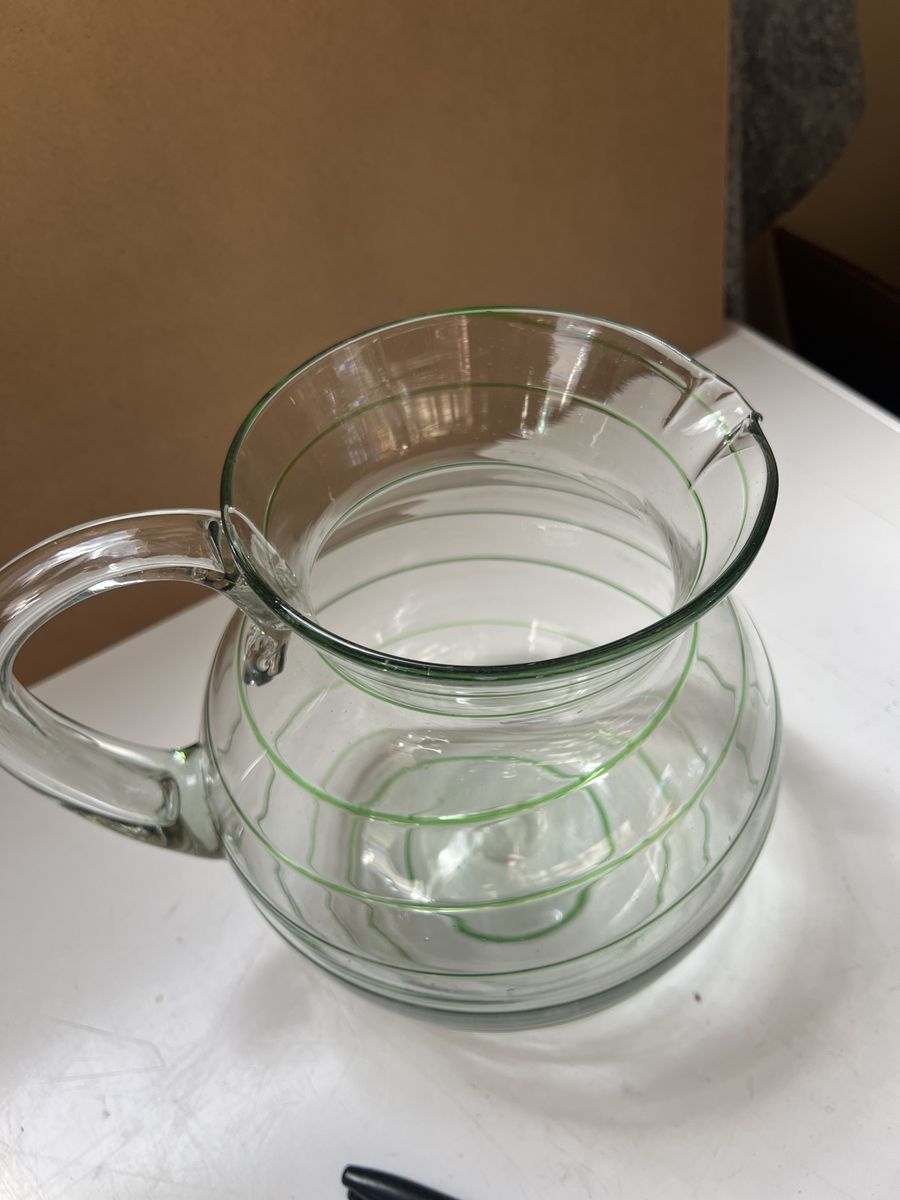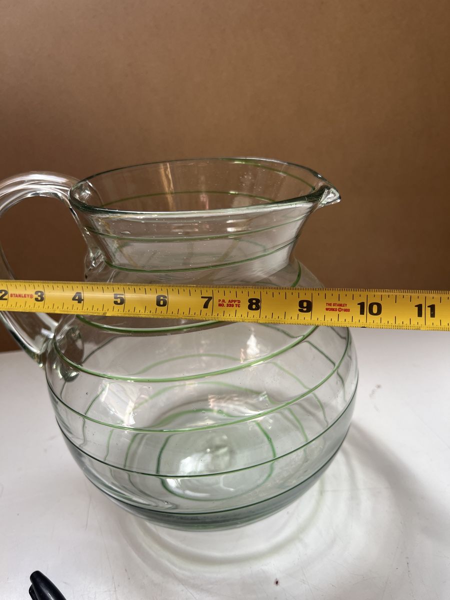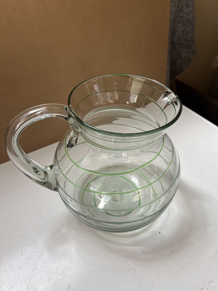 VenmoThis vintage glass pitcher is a hand-blown piece featuring green spiral threads, similar to styles produced in Mexico mid-century European designs. Excellent condition. Beautiful. Pick up in Draper. Cash or Venmo. $60.