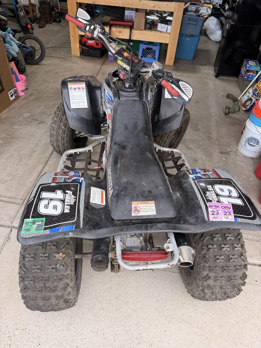 ApplePayNice Honda 400EX. Starts up and runs, has a jetting issue I believe. Having some backfiring. Had a bottom end engine rebuild a few years ago after the shifter shaft broke. Has some mods, stock motor. Wheels are very nice on this. Good deal if you want to wrench a little.