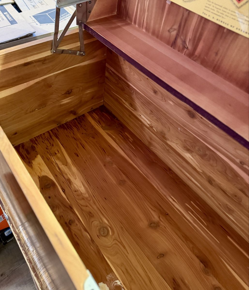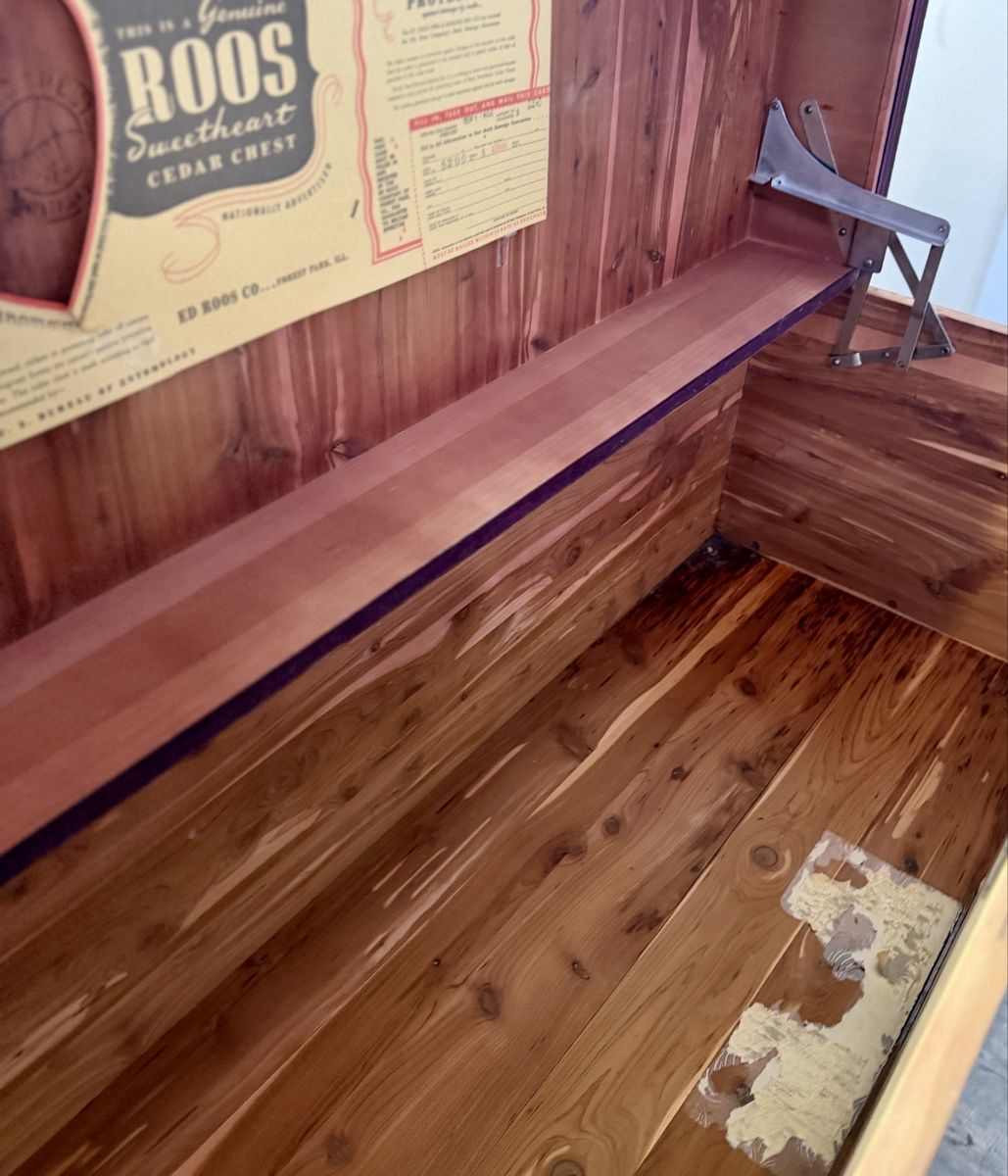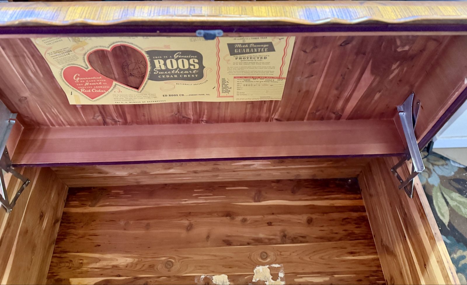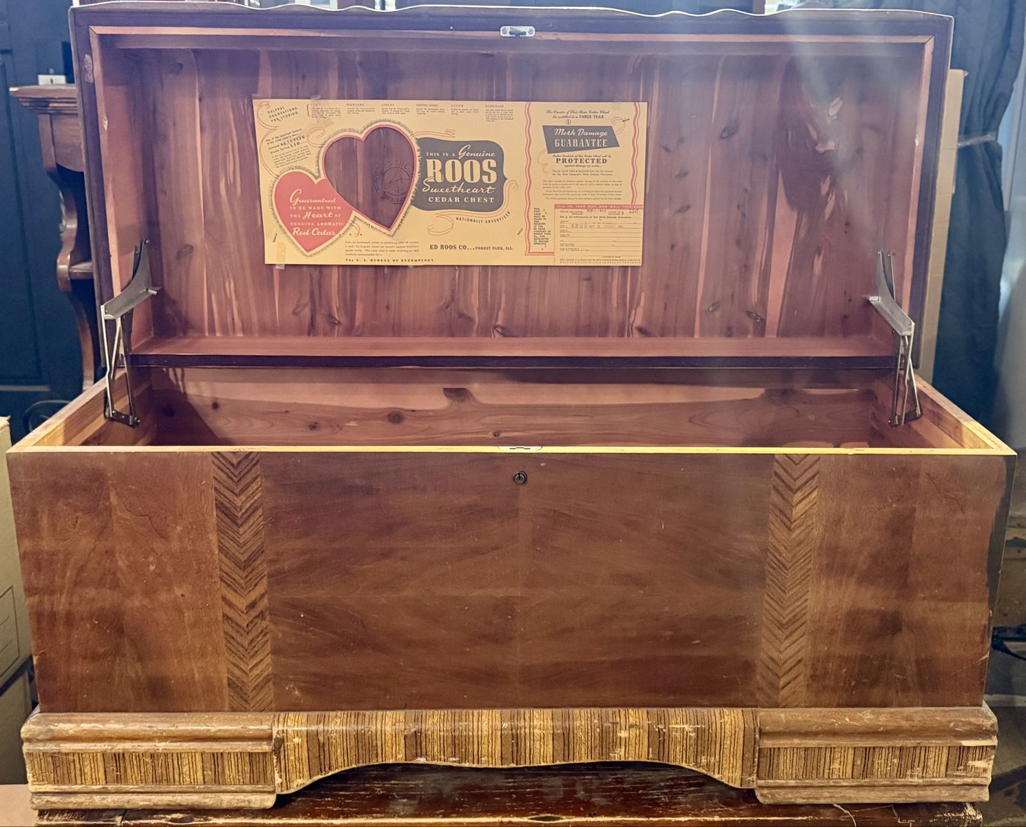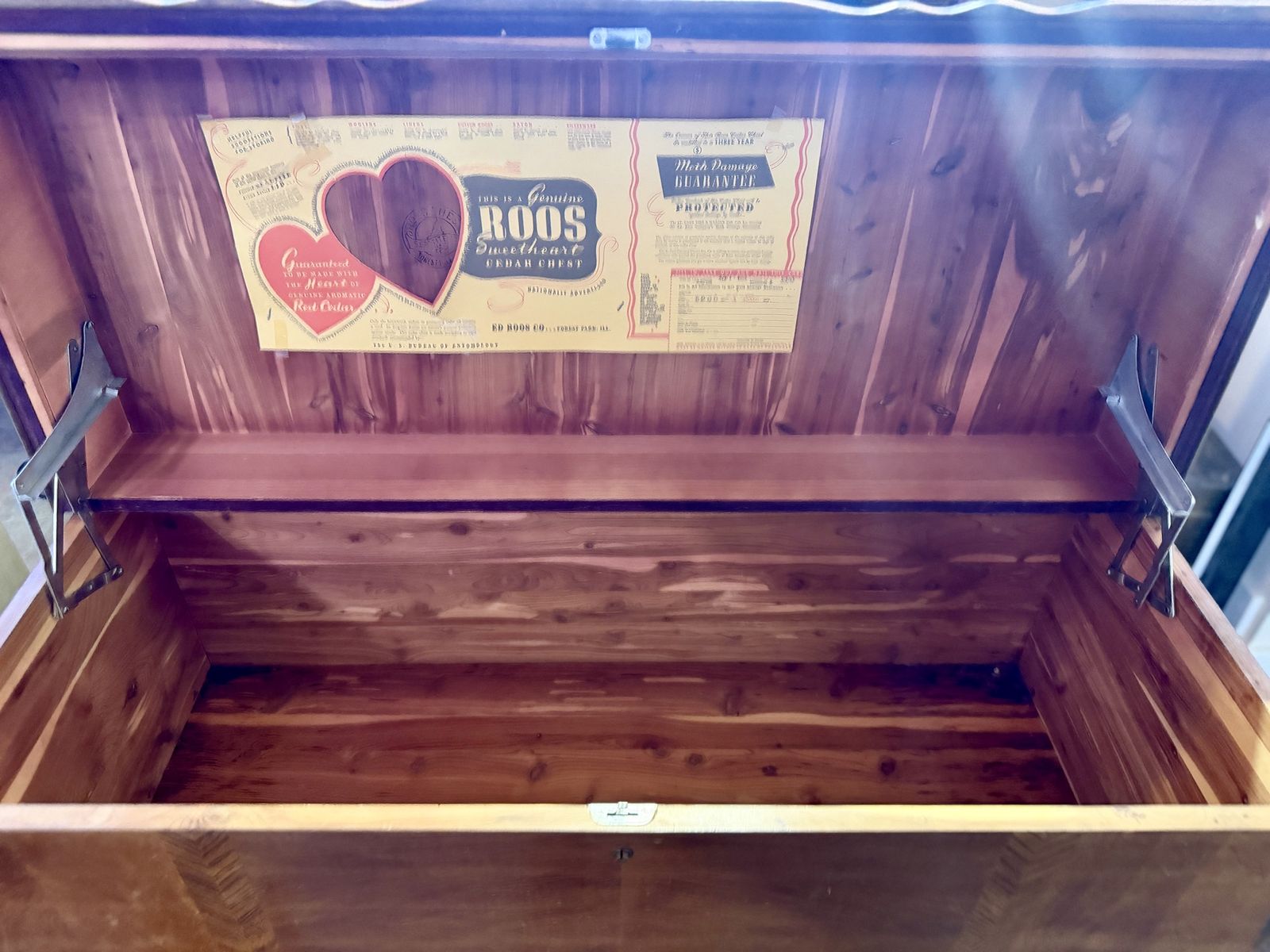 VenmoGenuine Roos “Sweetheart” cedar chest. Solid cedar construction with a clean interior that still has that classic cedar smell — great for storing blankets, clothes, keepsakes, or seasonal items.