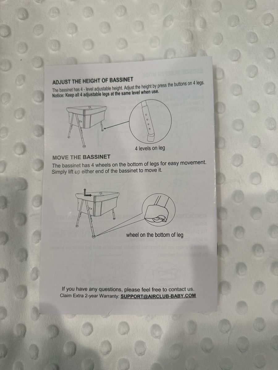 VenmoVery sturdy and clean Air Club Baby bassinet. Like new condition. Only used for one child about 5 months next to the bed. Legs are adjustable and I easily fit this in my Honda CRV. Comes with plush pad, carrying/storage case and straps for mounting to a wall. We never used the straps because it was so sturdy but they would be nice if you had large pets or other young siblings. Pickup in Kaysville or I could meet in Taylorsville 4700 S/I 215 exit on Tuesdays and Thursdays. Cash or Venmo.