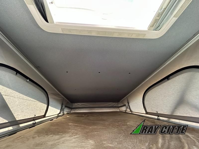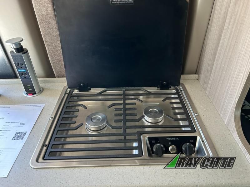 Start traveling the right way with this motorhome! It features a rear 72" x 66" pull out bed with under bed storage for extra blankets or other necessities, plus there are large opening side windows at the head and foot of the bed to let in more natural lighting and fresh air. Freshen up each morning in the manual enclosed wet bath with a cassette toilet and a closet next to it to store your towels. Once you have prepared your best home cooked meal with the gas two burner cooktop, you can head to the collapsible dinette table to enjoy them there comfortably and then watch your favorite movie on the 24" TV!