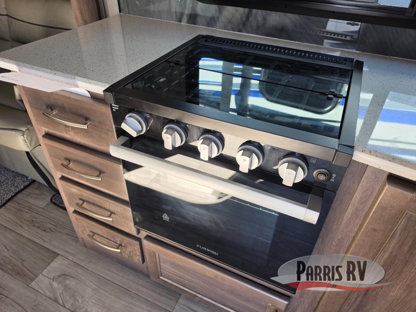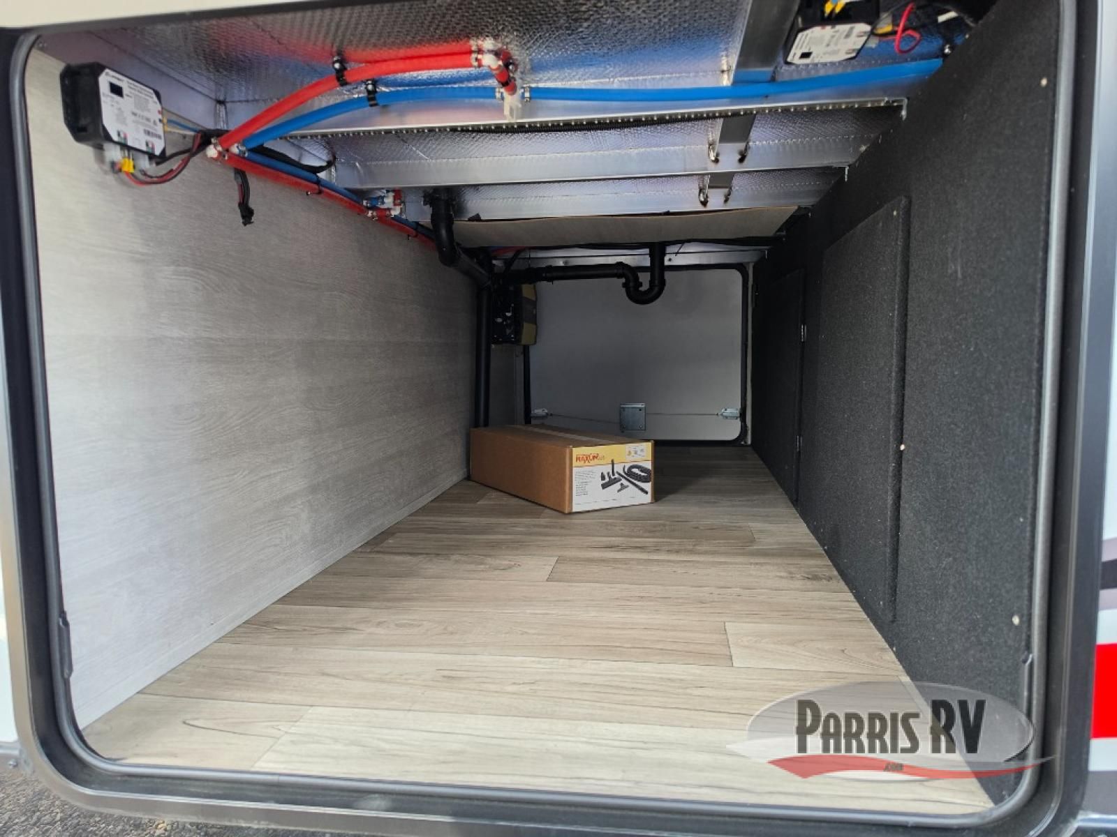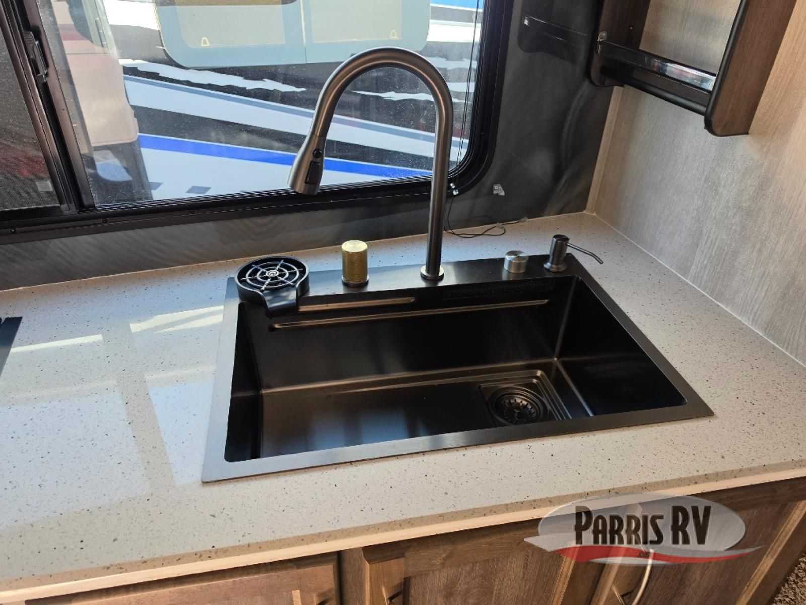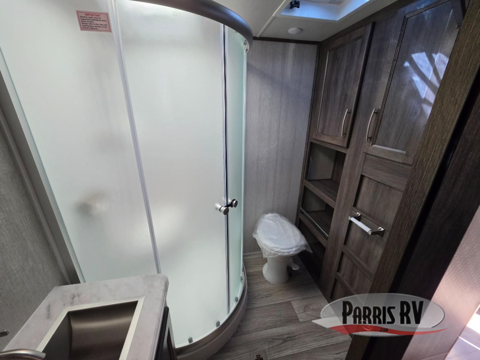 Sit back in one of the two lounge chairs on this Vortex toy hauler after exerting all of your energy out on the trails for the day! If you need to replenish your energy, grab some food from the 8-cubic foot refrigerator or heat up some leftovers in the XL residential microwave. The sofa table is good for eating meals or catching up with friends over dessert, and the full bathroom has a linen closet to store your towels. The private bedroom has a wardrobe slide to add space for moving about and storing your clothes, and you can also add another optional slide in the main living area.