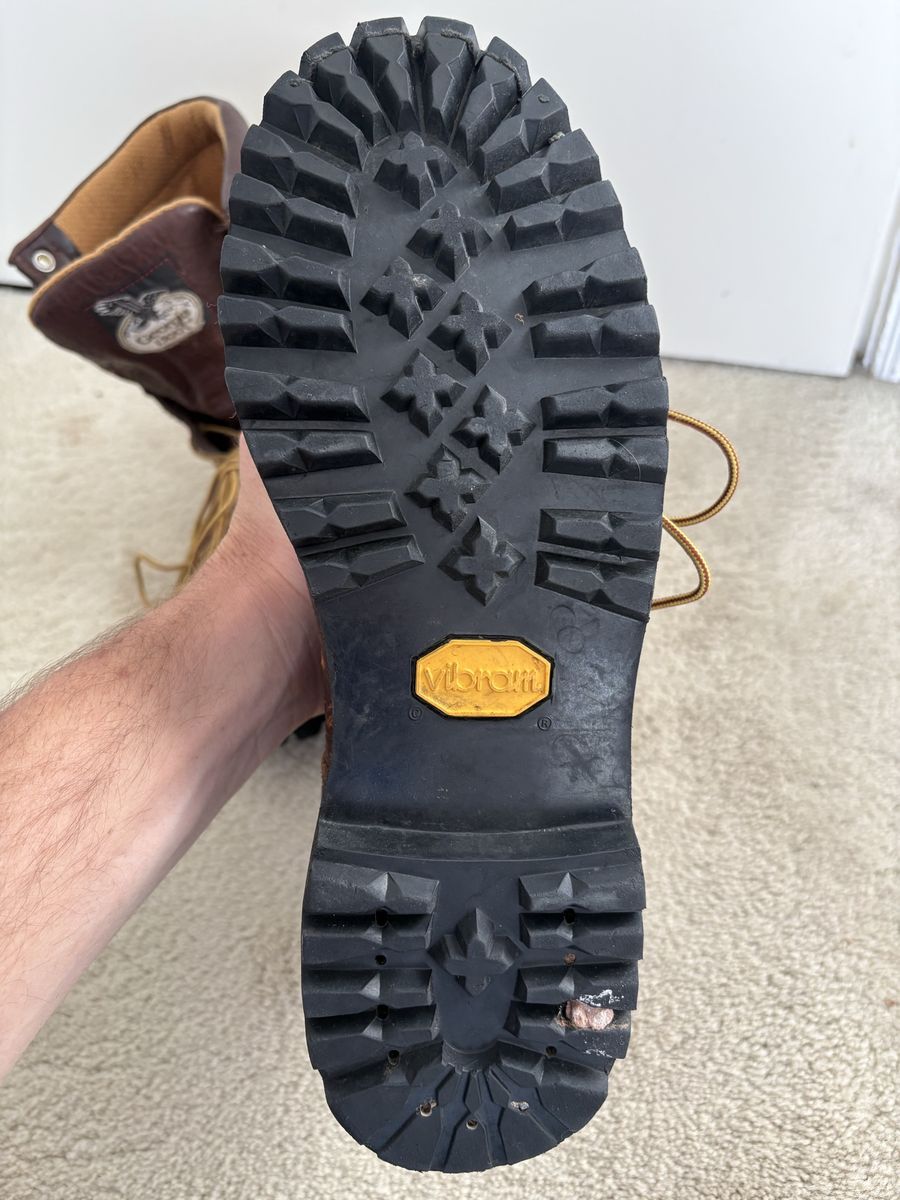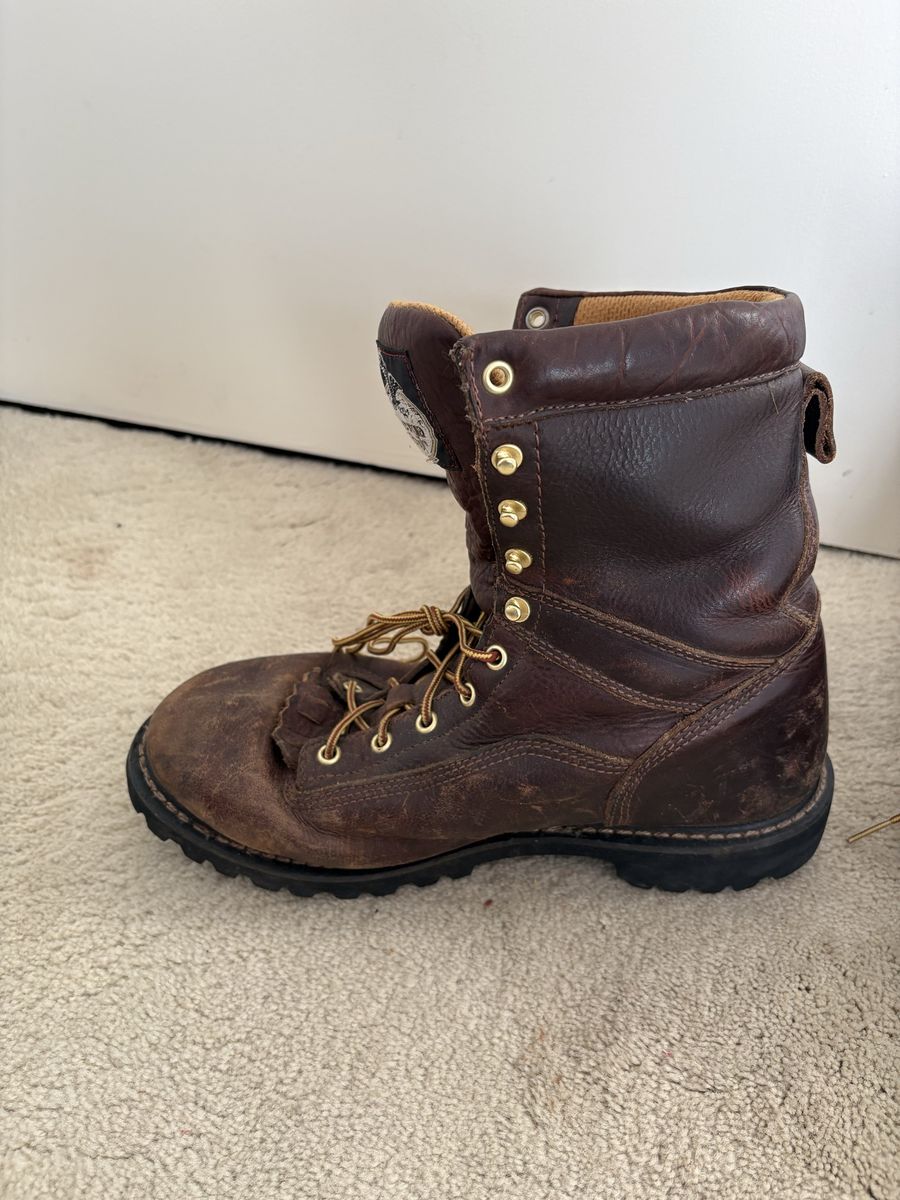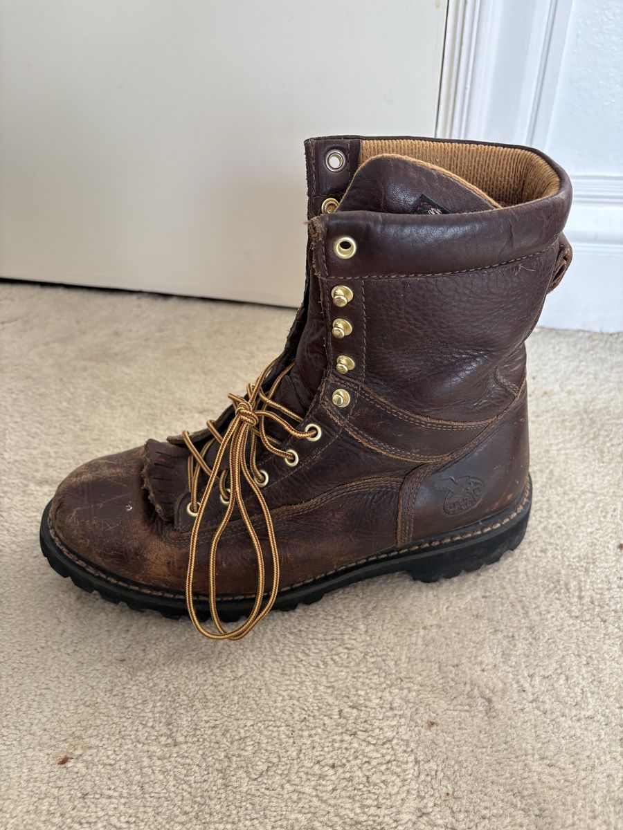 Size 10 men’s lace up boots. Used for a couple weeks in the summer a couple years ago. Leather boot with Vibram soles.