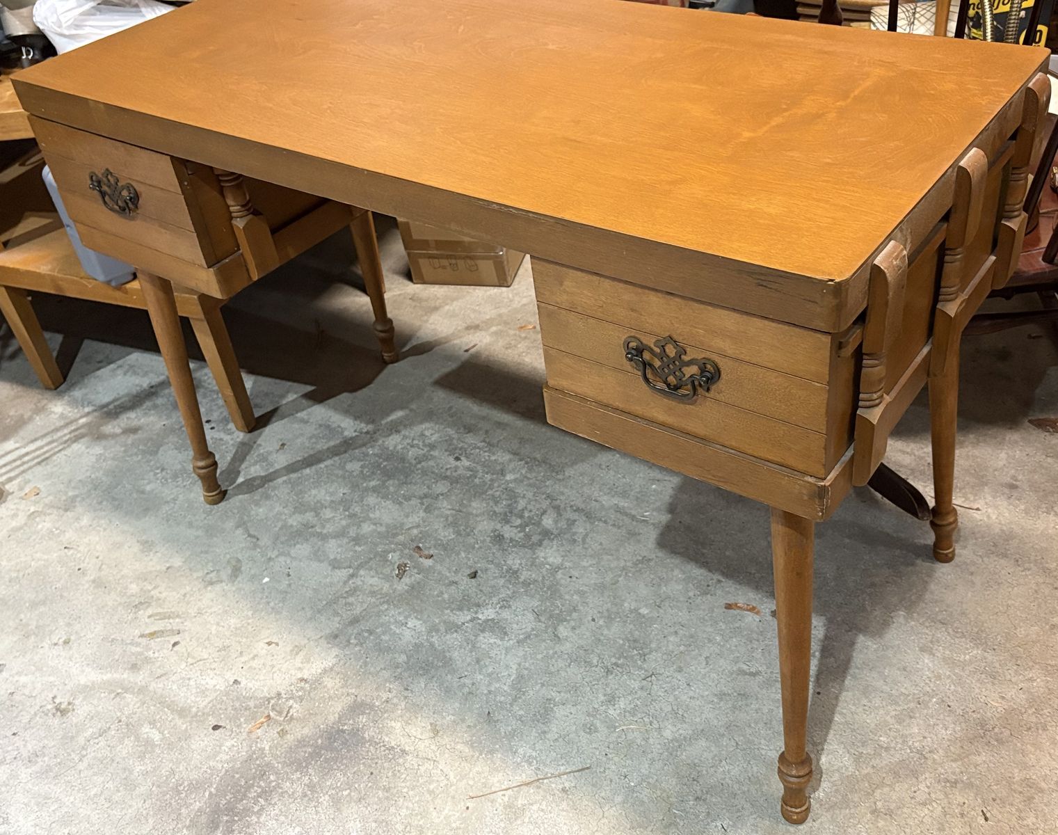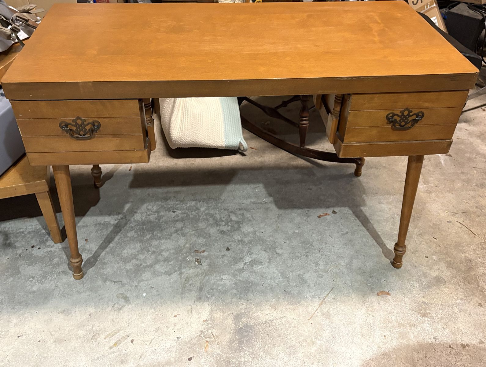 VenmoAdorable Mid Century desk w drawers. Beautiful, real wood top. The wooded desktop top has been refinished and looks fantastic!!