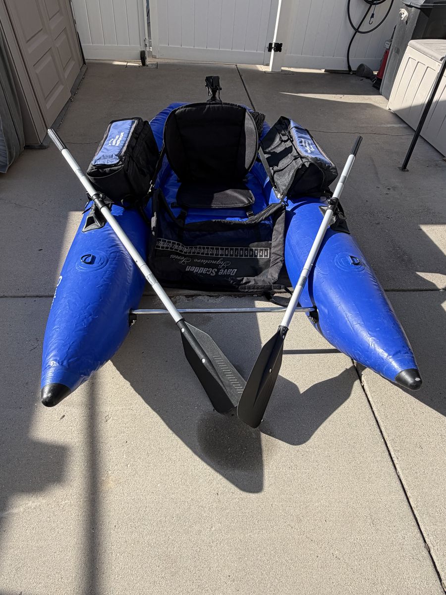 Frameless Outlaw Predator for sale. Like new, in excellent condition. Inflates to 8 feet, but deflated will fit in car trunk. Light enough @ 13 lbs. to carry to your favorite fishing spot. Has a Class 4 rapid rating. Includes: