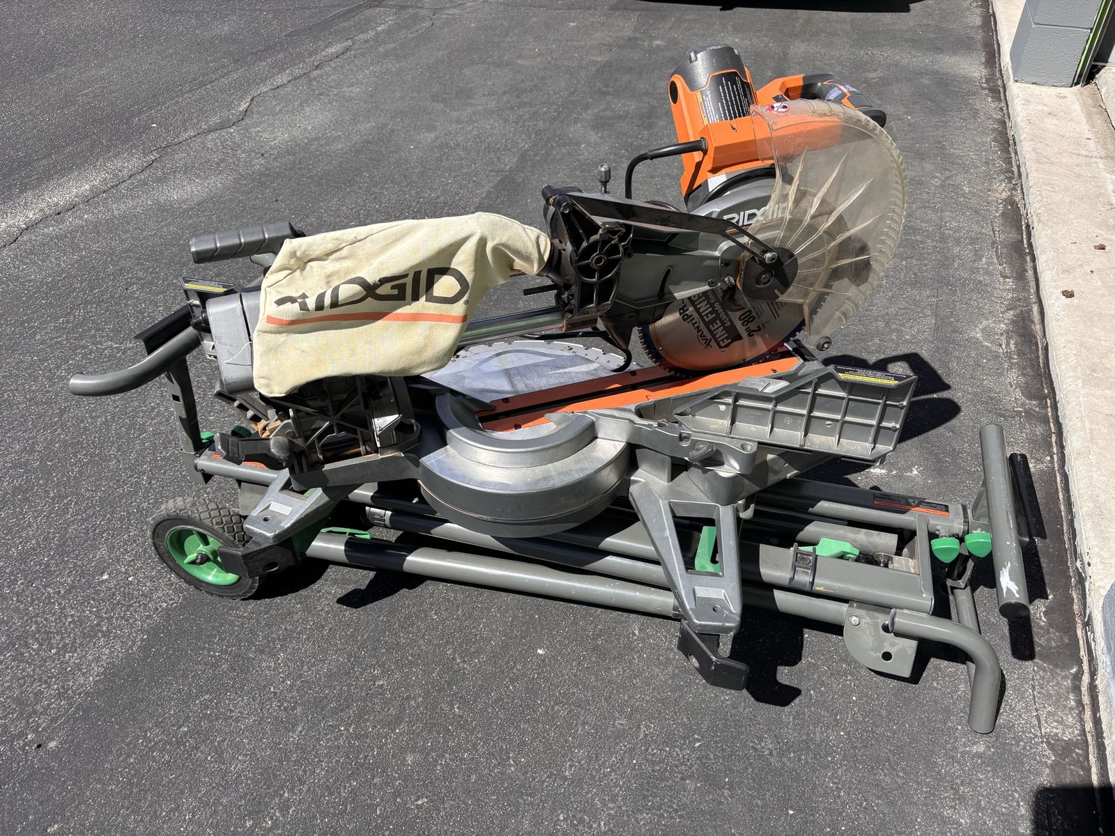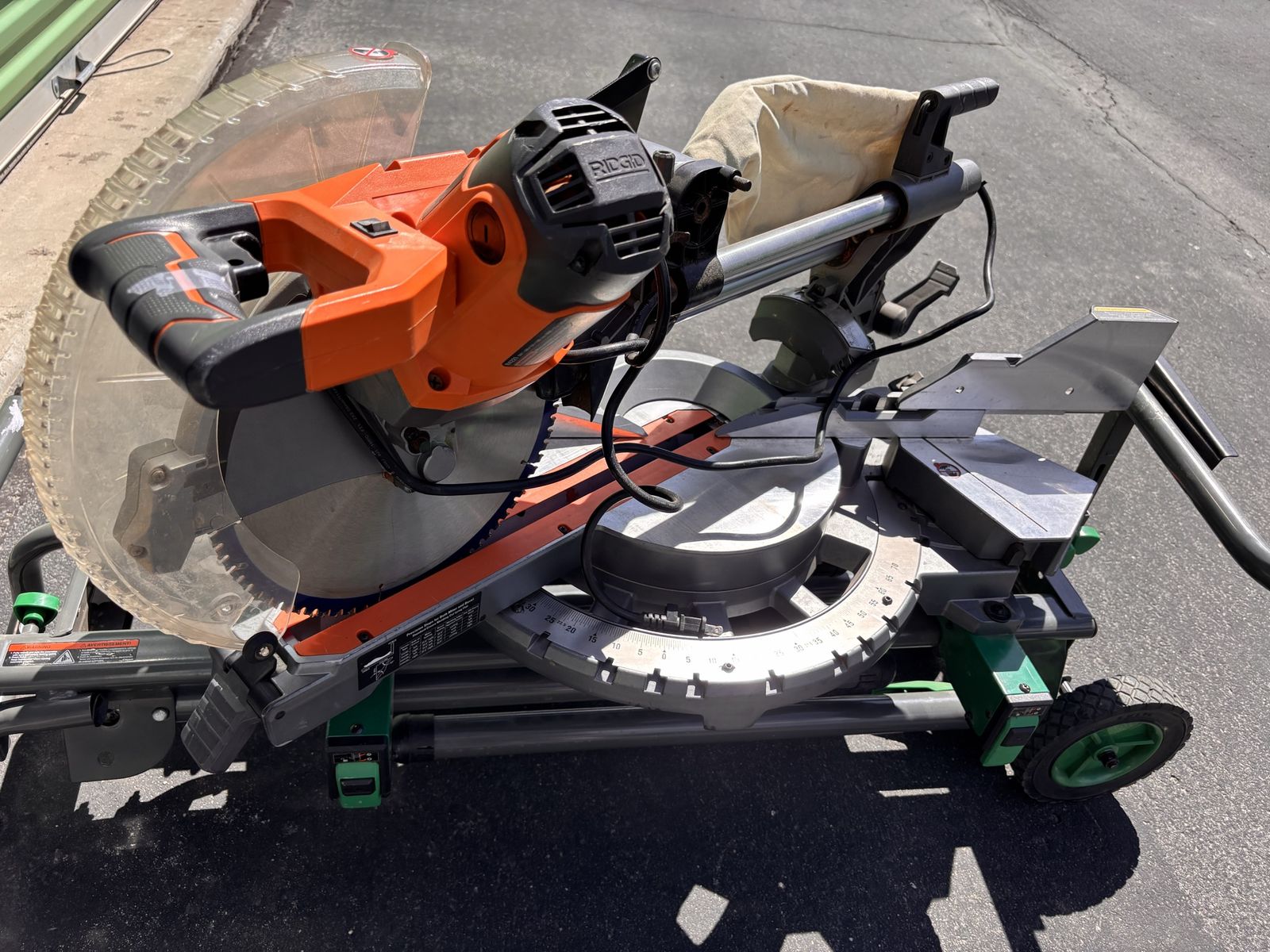 Used, good working Ridgid 12” dual bevel miter saw in good working condition! Comes on a hitachi mobile stand! A little dirty, but still works great! These saws are amazing for residential or commercial use! As always Ridgid makes great tools! This exact saw and stand would cost you 549.99 plus tax at the depot now! Don’t pay retail prices, call Dustin instead at 801-205-3404, I need it gone!