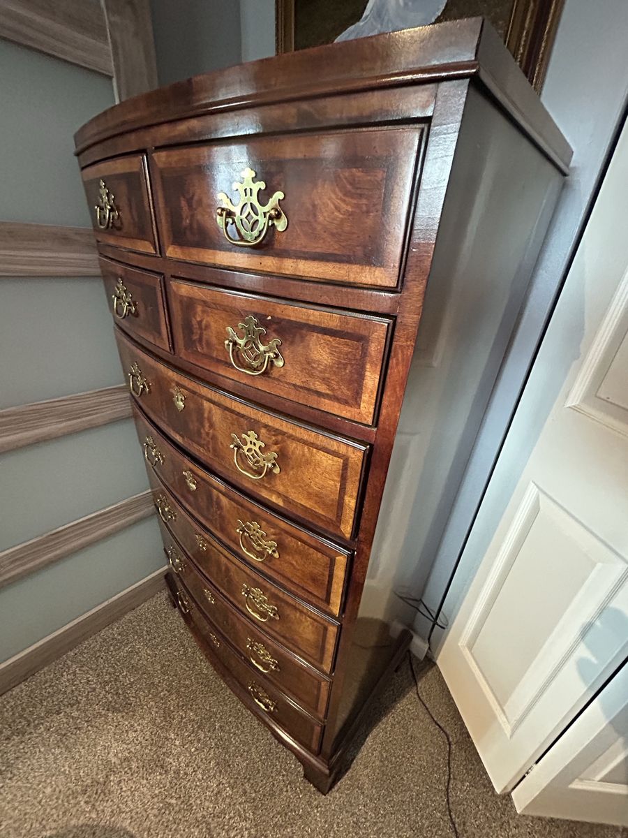 VenmoVintage Henredon Burled or Banded Mahogany 9 Drawers Chippendale Style High Chest Dresser