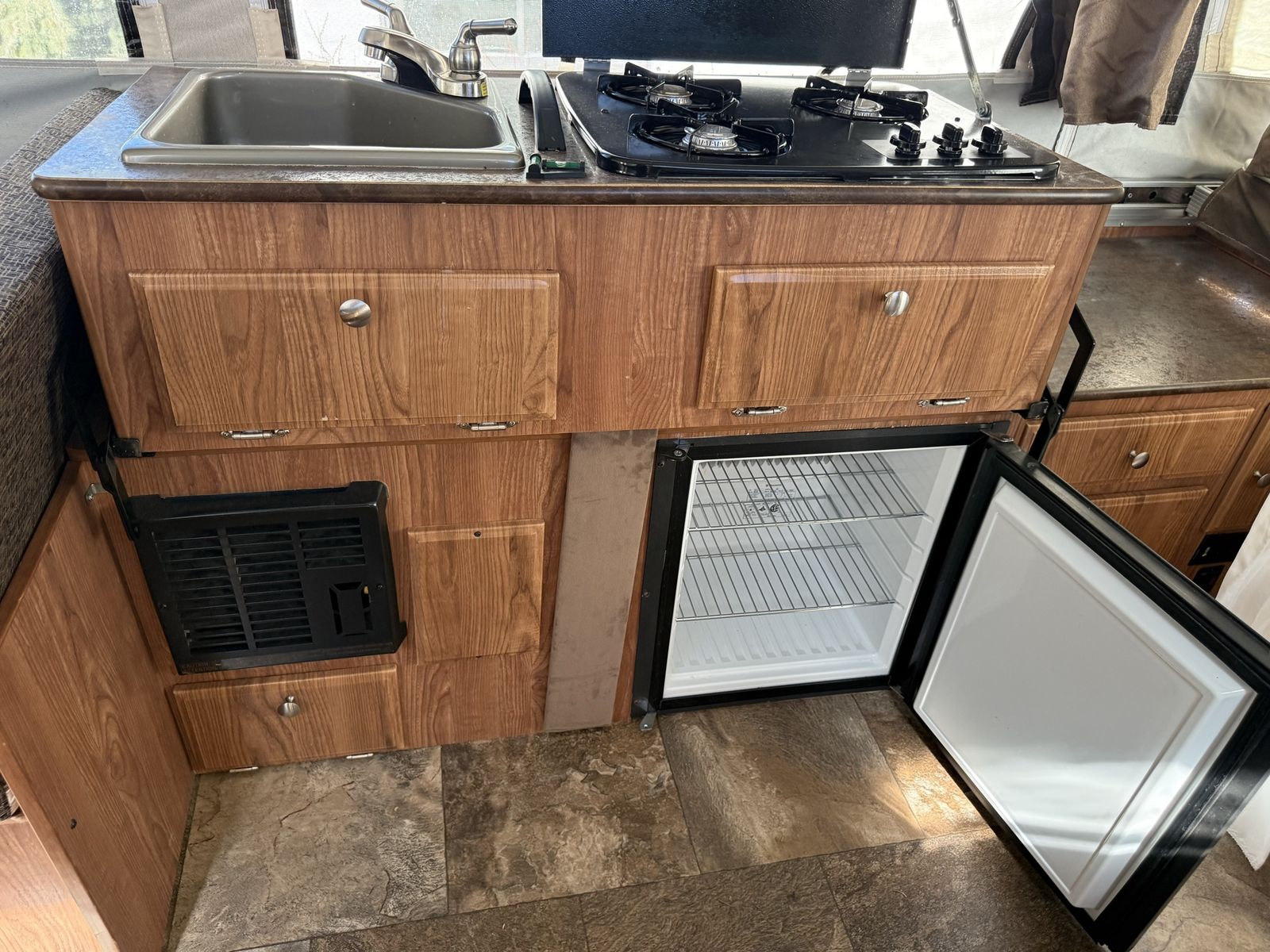 Climate Control: 20,000 BTU furnace with automatic ignition to keep you warm in the early spring/late fall.