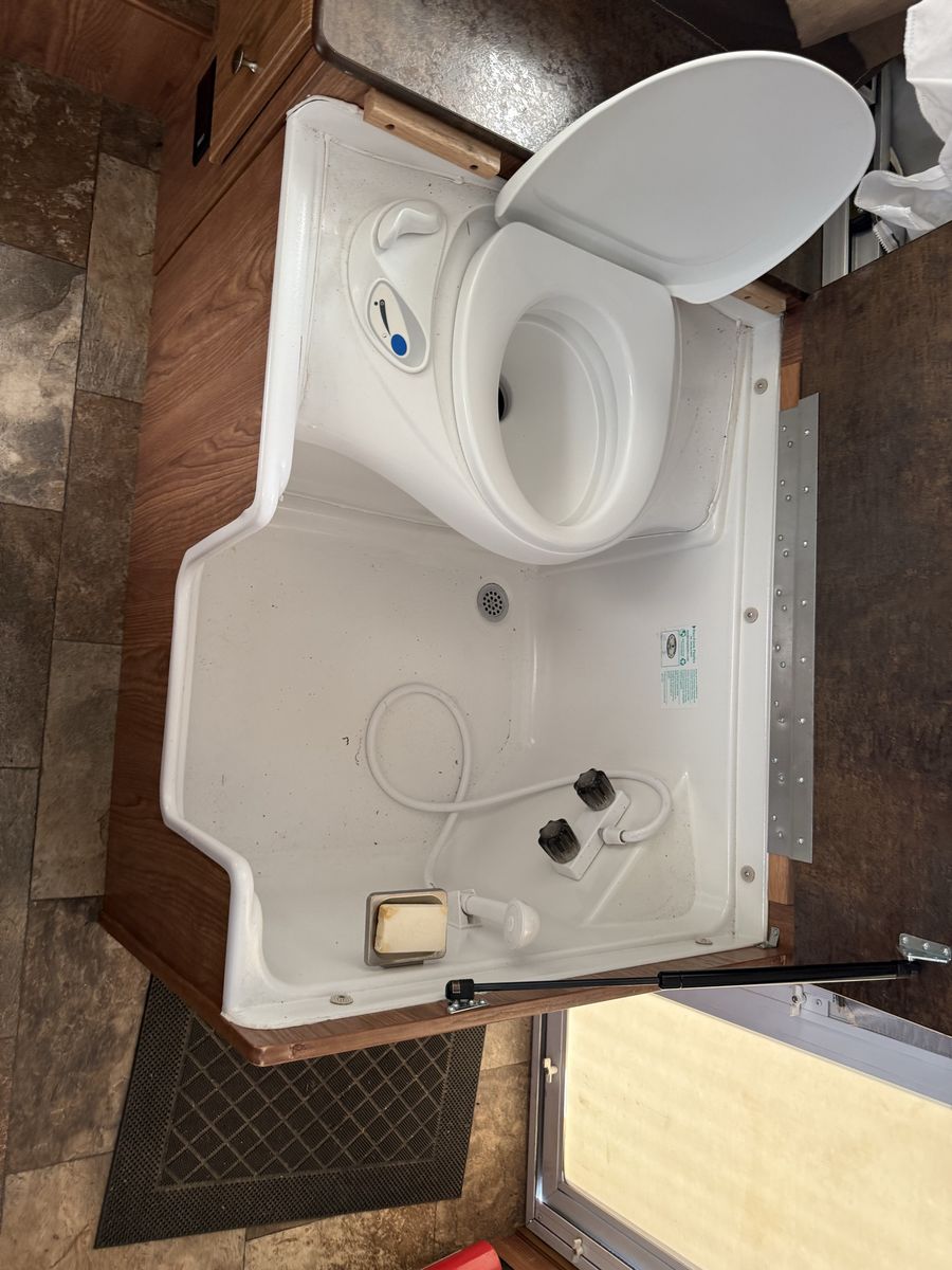 Full Bathroom Amenities: Includes an interior shower and a built-in never-used cassette toilet (not a loose port-a-potty).