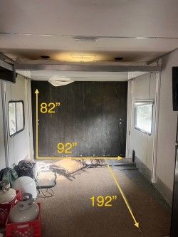 Spacious layout with plenty of room for toys and comfortable living - perfect for camping and traveling. It is big enough for a Harley Trike and a Harlely Ultraclassic to fit in, or a side by side.