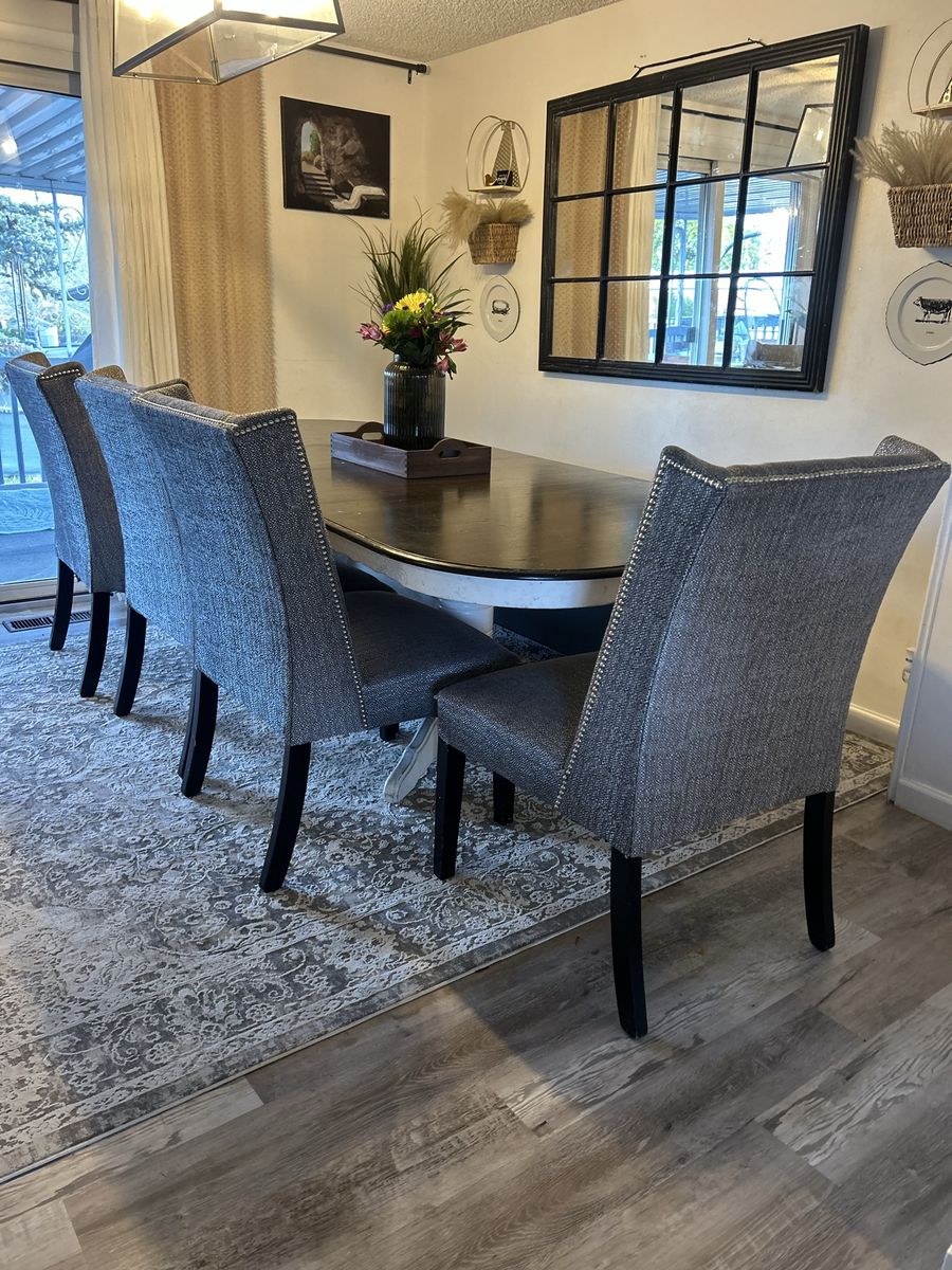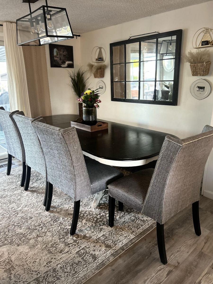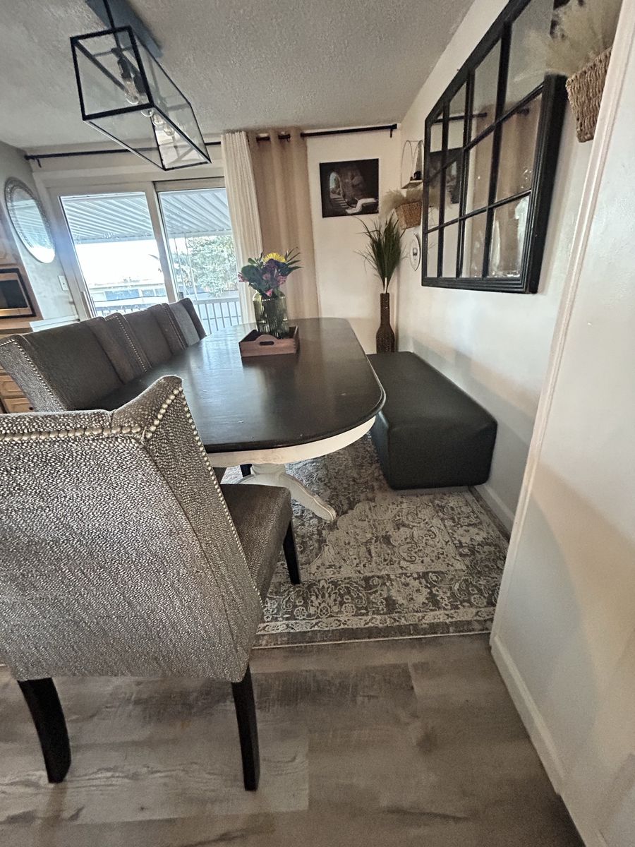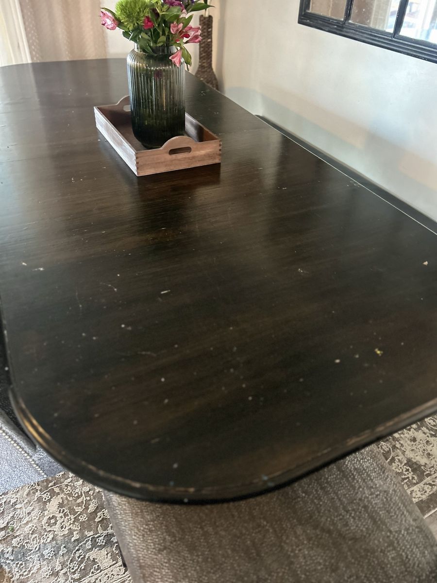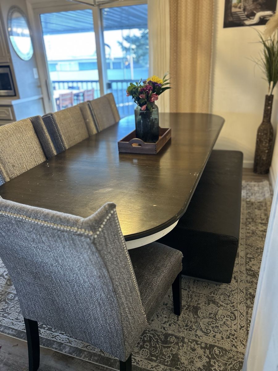 VenmoUsed solid wood dining table, chairs and bench. Chairs could use a wipe down, one needs better supports eventually. Table has 2 leaves. $200 OBO FCFS. Large enough to seat 7, putting breakfast nook in instead.
