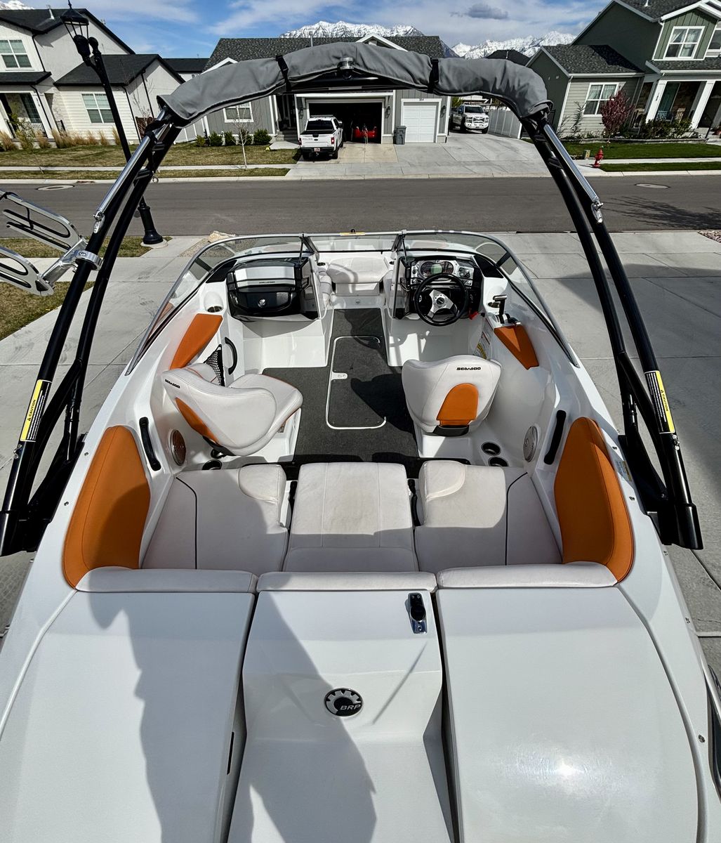 PayPalVibrant boat in excellent condition with no performance issues & clean title. Low mileage at 228 hours and an audio system that can connect via usb cable. Last August, it was serviced with a new jet, impeller & wear ring. As well, the engine was serviced before winterizing with an oil change, filter and new spark plugs. It has been kept in a garage and winterized its entire life. The boat has lots of storage and will include all as seen that is shown stored in the images: