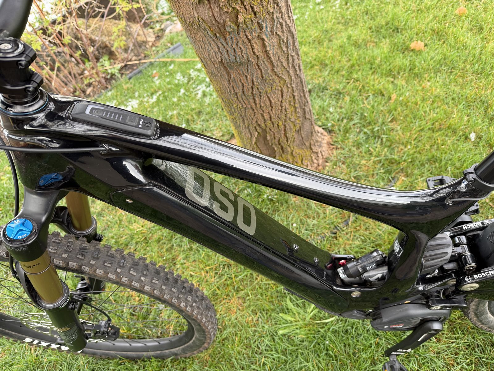 Includes Bosch charger, Fox 38 tokens, and a 900 lumen Lupine SL F Nano front light that came with the Oso but I never installed.