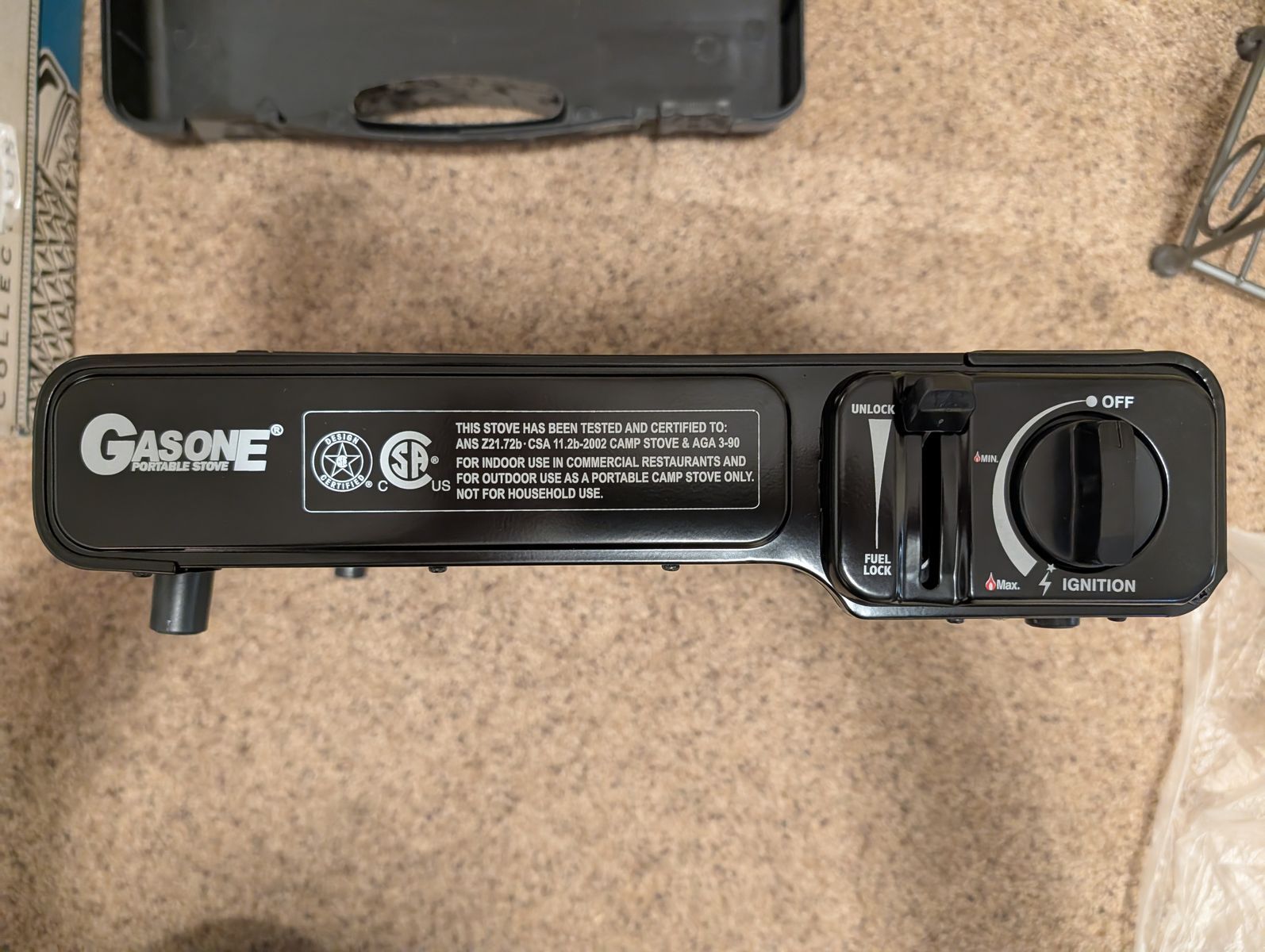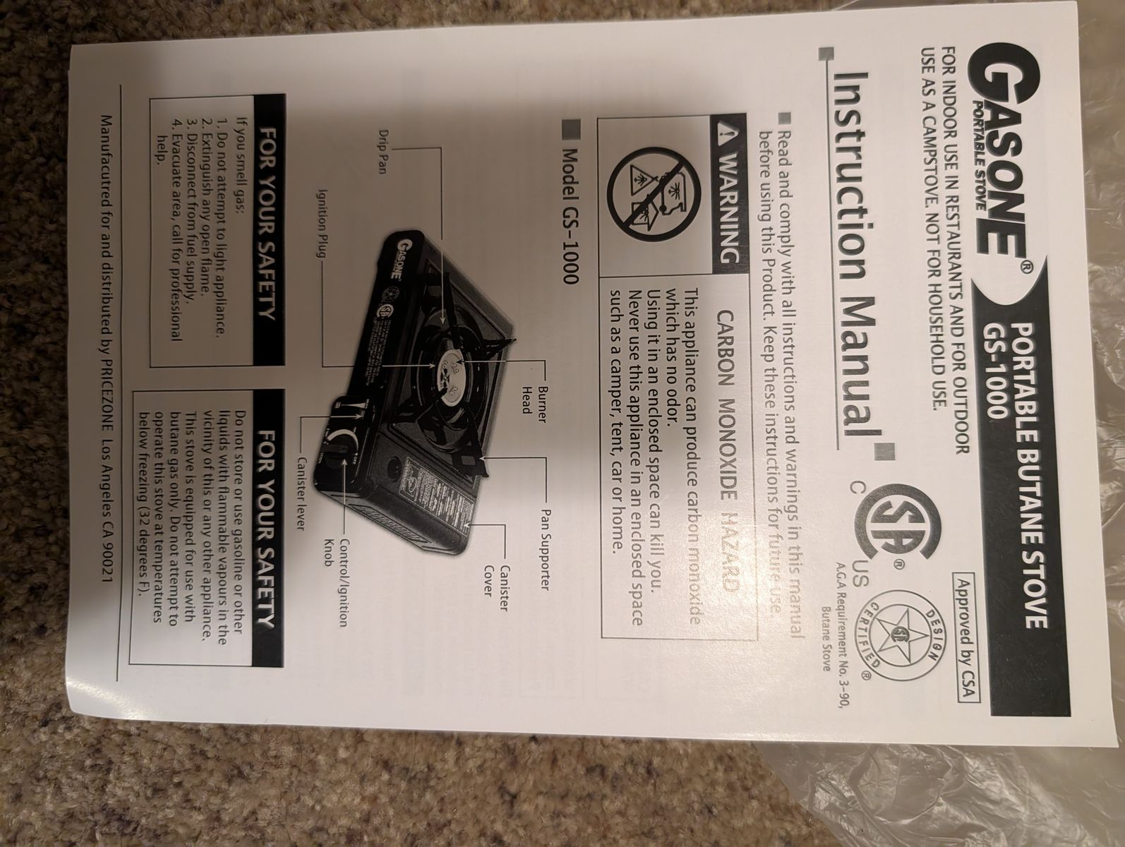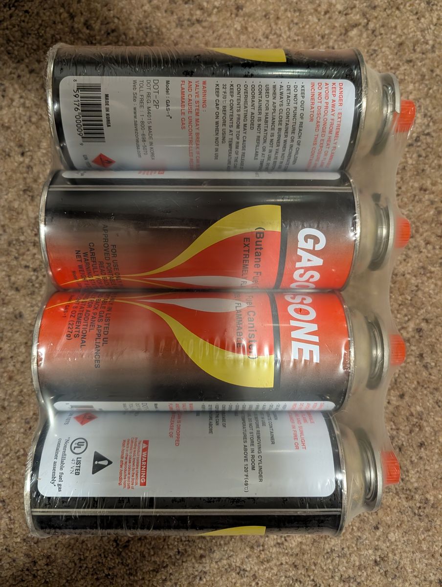 Never used. Perfect condition. Portable, tabletop butane stove perfect for camping or emergency preparedness. Comes with plastic case with sliding latches. 4 pack of brand new, in package refills, 8oz each. Everything included. Exact cash or Venmo.