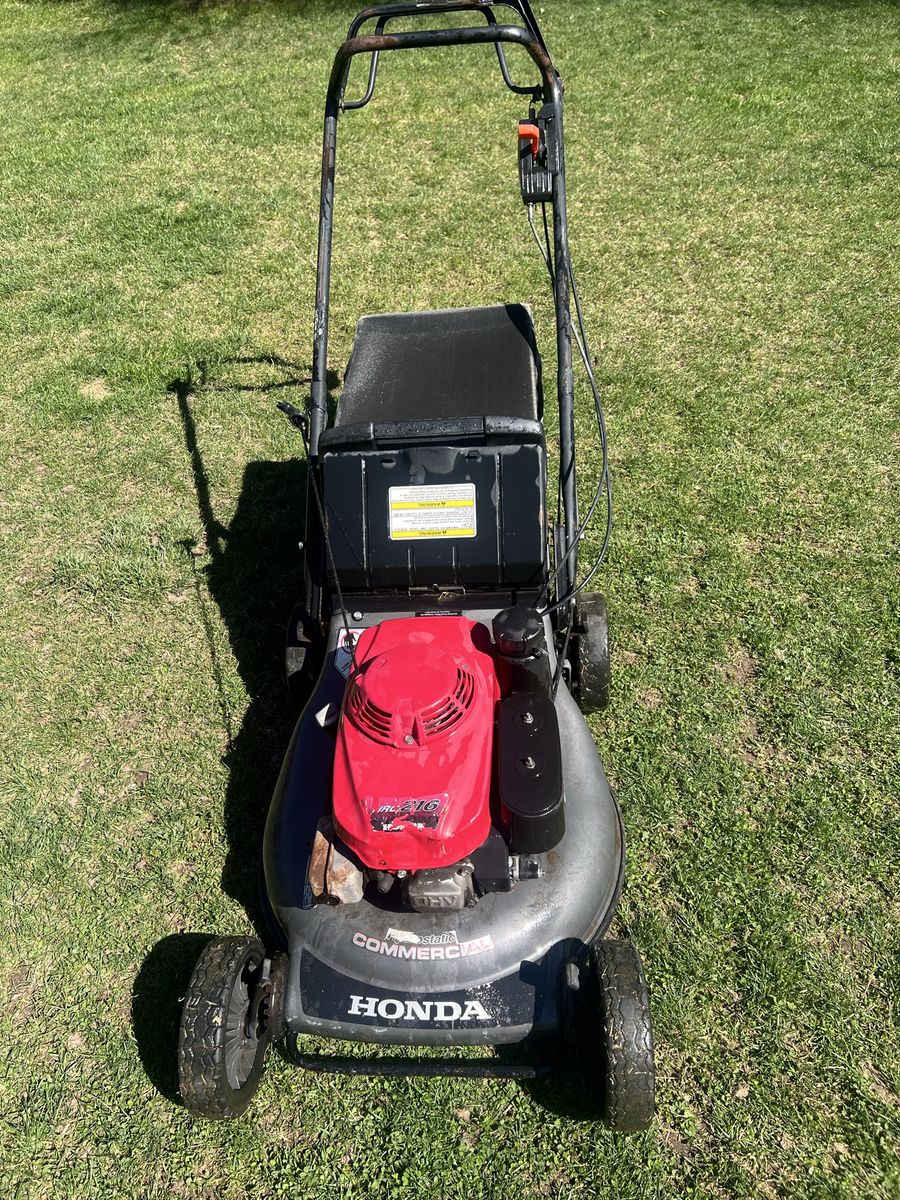 HONDA HRC216; Key Specifications (HRC216 Series) •Engine: Honda GXV160 (163cc) commercial-grade engine. •Deck: 21-inch cutting width, 16-gauge steel with standard deck guards. •Transmission: Hydrostatic Cruise •Control (variable speed). •Ground Speed: 2.1 to 4.0 mph. •Blades: Twin blades (MicroCut System®). •Cutting Height: 3/4" to 4" (8 positions). •Weight: ~117–127 lbs (depending on model). Fuel Capacity: 0.37 gallons.