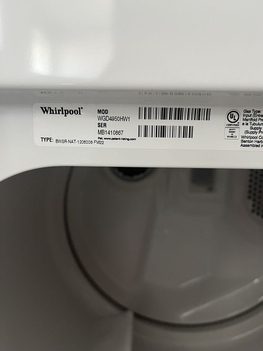 Whirlpool gas dryer, in overall good condition. Have to sell it as I moved in to a new house that doesn't have the gas line for the dryer.