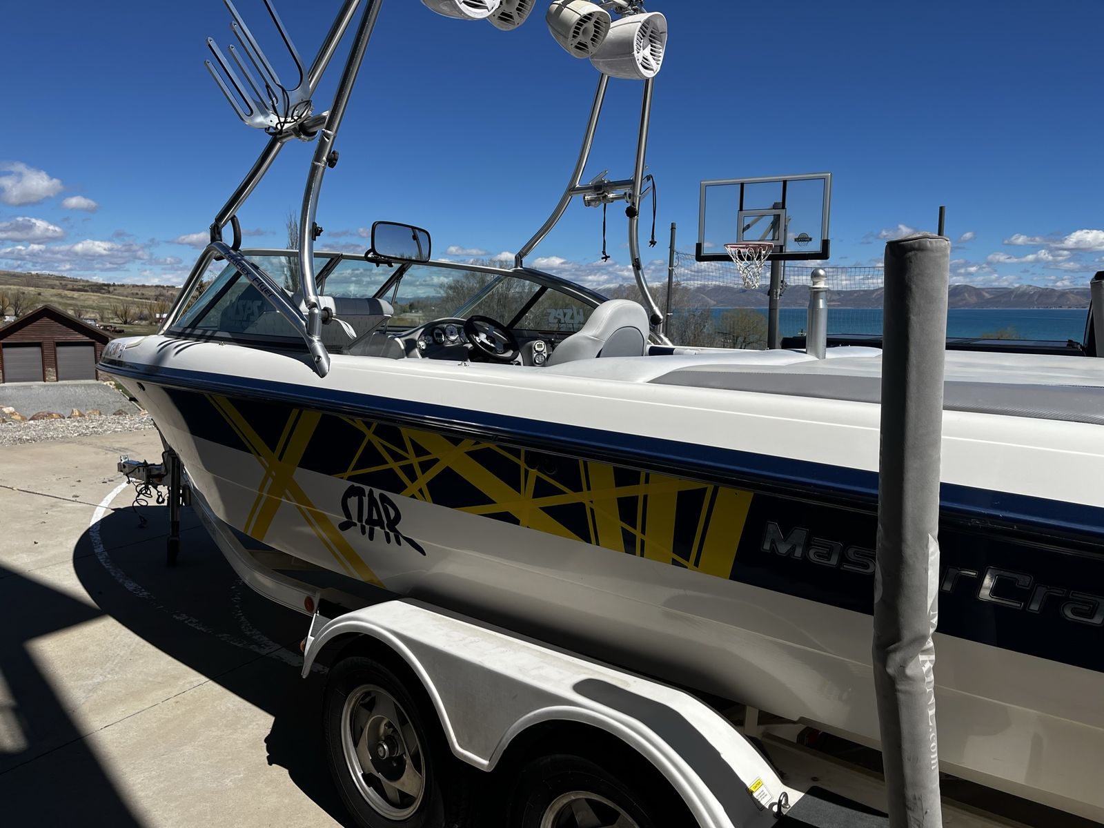Includes 1000 W Memphis and JBL stereo One cover in good working condition and one brand new in the box Spare propeller Seat cushions replaced in the past three years 492 original hours Aftermarket Bimini Trailer tires replaced last year Hydro phase cruise control with GPS 330 hp V8 5.7 L Oil changed every year. Average of less than 30 hours per oil change. Impeller changed every year. New impeller was zero hours in now. Stored in garage Only used in freshwater Hard ballast tanks and bags complete with pumps and switch switches Two battery system Everything works as it should. The boat starts and runs out perfect we are able to get a good surf wave for everyone. The wakeboarding and water skiing are great behind this Boat.