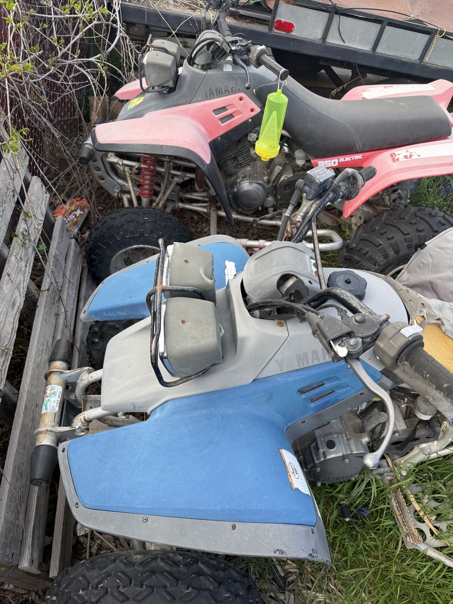 ApplePayWe have 3 Yamaha warrior 350's with a small trailer. Years are in the 90's. Kids have outgrown them and have taken over the SxS's so they have just been parked. Ran fine a couple years ago. Tubes in tires. Need them gone. All 3 and trailer for 3500 OBO. Have titles. All need some TLC.