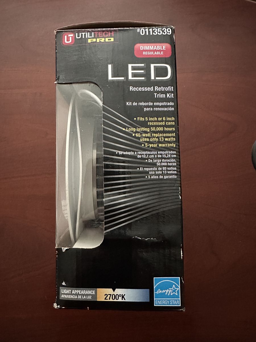 These are Commercial Electric 6-inch LED Recessed Trims. They are brand new and "retrofit," which means they screw into your current light sockets just like a regular bulb. No complicated wiring or electricians needed.