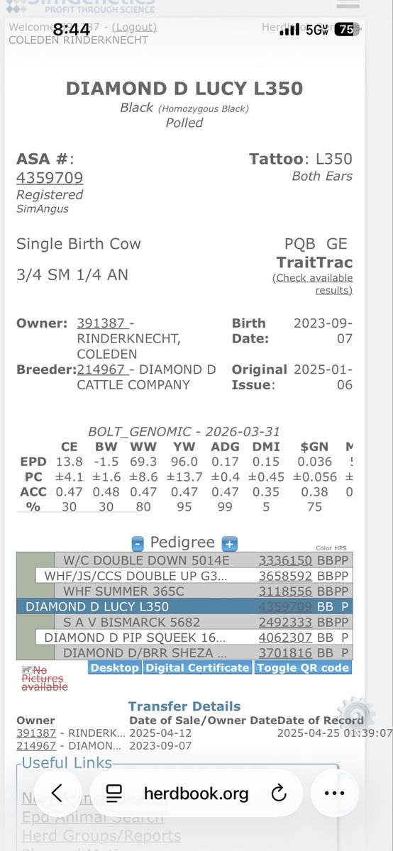 Nice calf just have too many and can’t keep this one. She’s out of a first calf heifer and is getting better and better every day. She has a really good temperament. This sexed heifer Night owl semen is bring 250+ a straw. Calf is not registered yet but can be if buyer is interested.