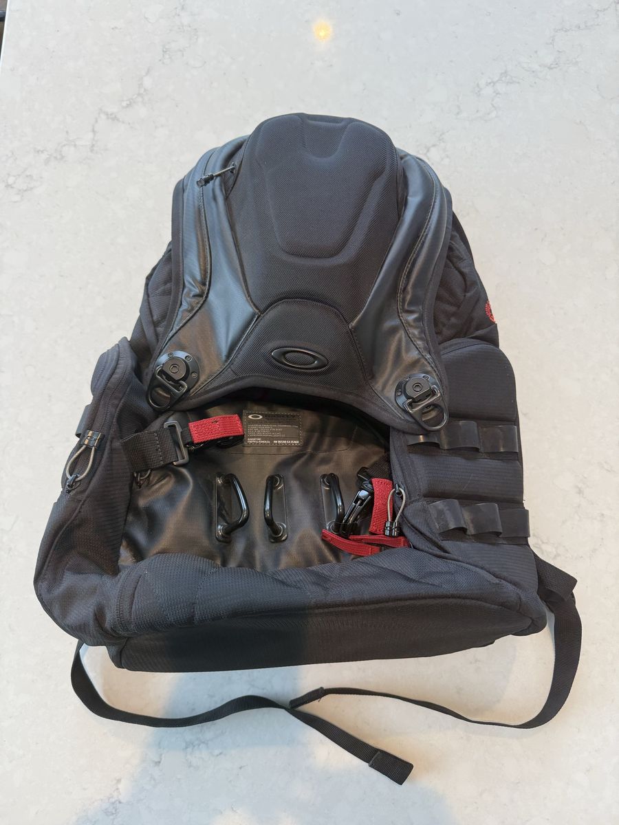 PayPalLIKE NEW NEVER USED Oakley backpack has been sitting in storage so it's time to find a home that needs it. Tons of storage and clips, hard case pocket for sunglasses etc.