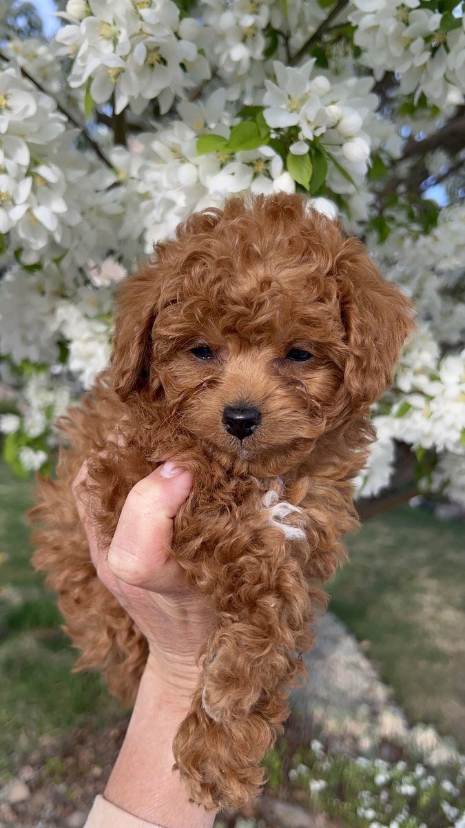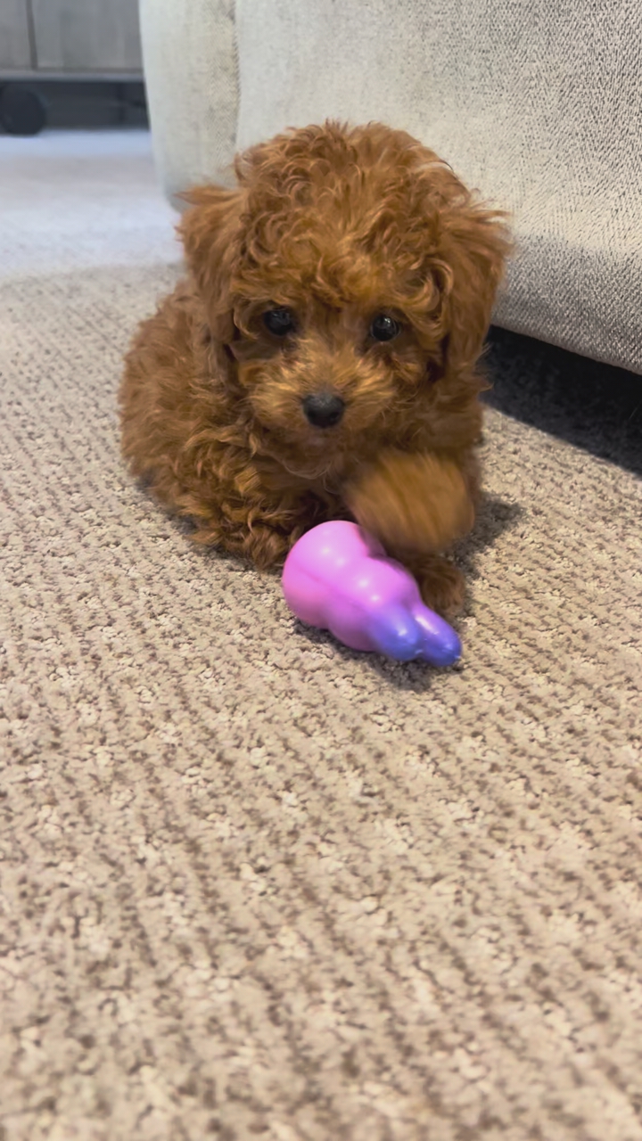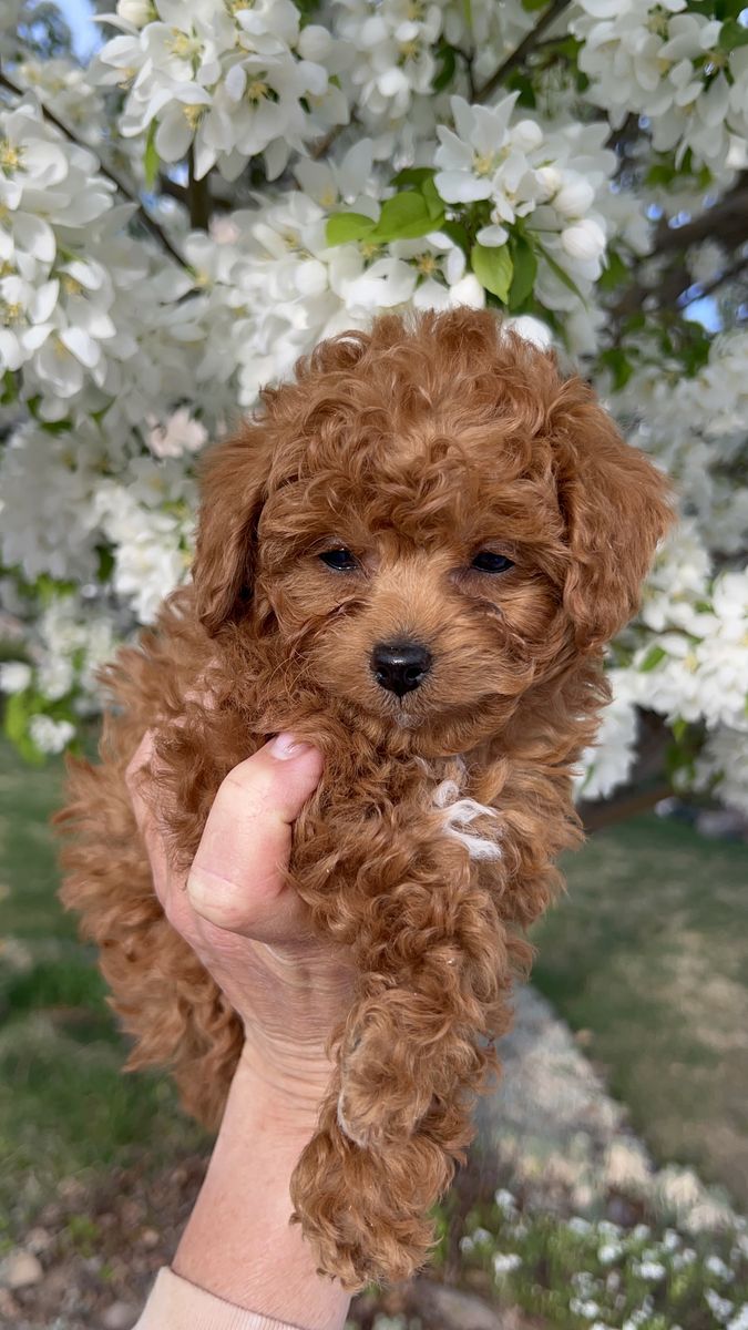 ApplePayThis adorable boy we call Lil Louie is absolutely the cutest tiny puppy! His DNA test estimates his adult weight will be 4 lbs! Louie has the cutest personality and loves everyone! He has an intense red soft wavy coat that will not shed. He's been raissed in a home with little children and other dogs. He's super social and doing great with potty training! Louie is current on all shots and wormings, has a vet health certificate, comes with a health guarantee and puppy take home bag! Make this lil cutie pie a part of your forever family today!